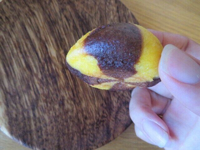 皿に盛ると、プレーンのたまごパンの色とチョコレート色が交互に組み合わさっているデザインがキュートです。