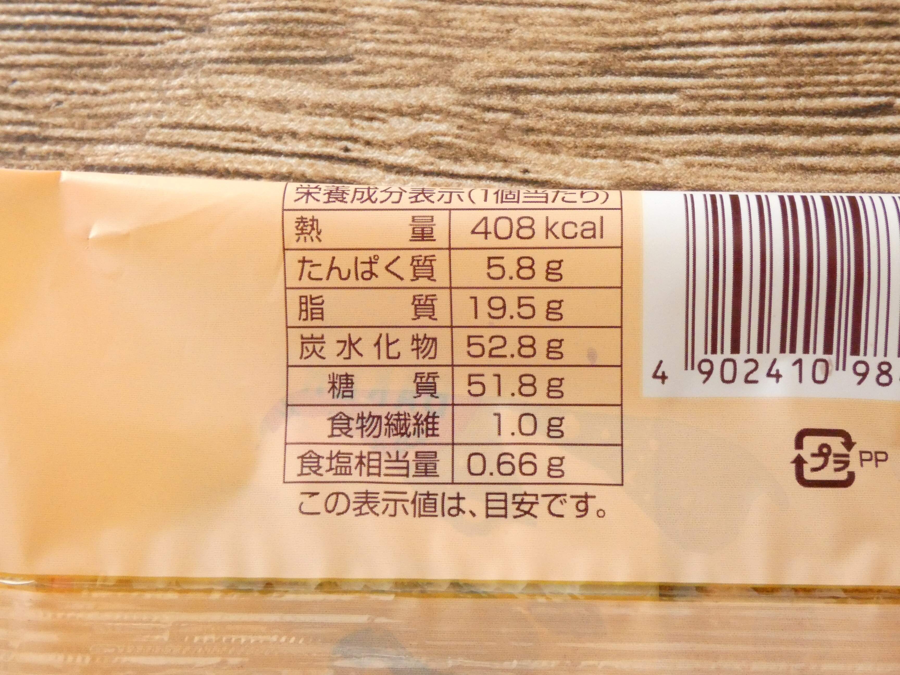 栄養成分表示を見ると、1個のエネルギーは408kcal。