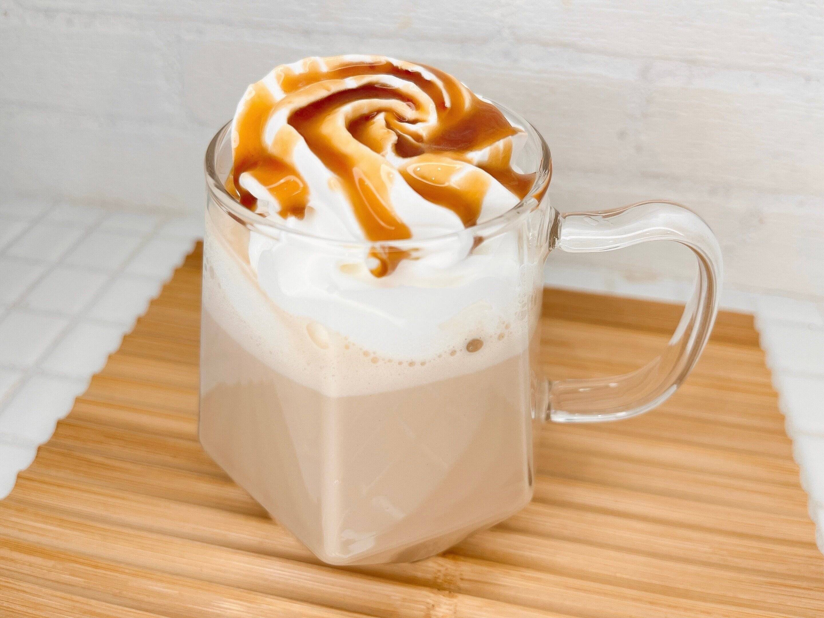 キャラメルプリンを、ほっとキャラメルラテにアレンジしてみました。