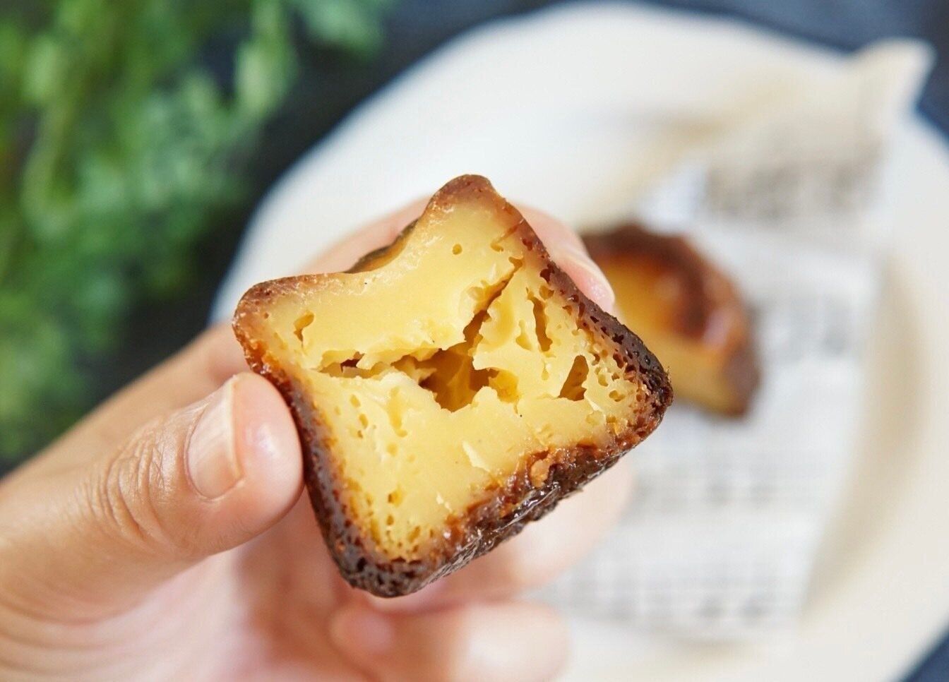 生地は、牛乳・卵黄・発酵バター・バニラシード等を使用。見た目の照り感にそそられ、バターとラム酒の香りを感じながら口にしてみると、最初カリッとの後にくる、もちもちっとしたカヌレ独自の食感がたまらないです。お酒が苦手なかたでも、これなら大丈夫ではないかと思う程度に、ラム酒の香りが効いています。