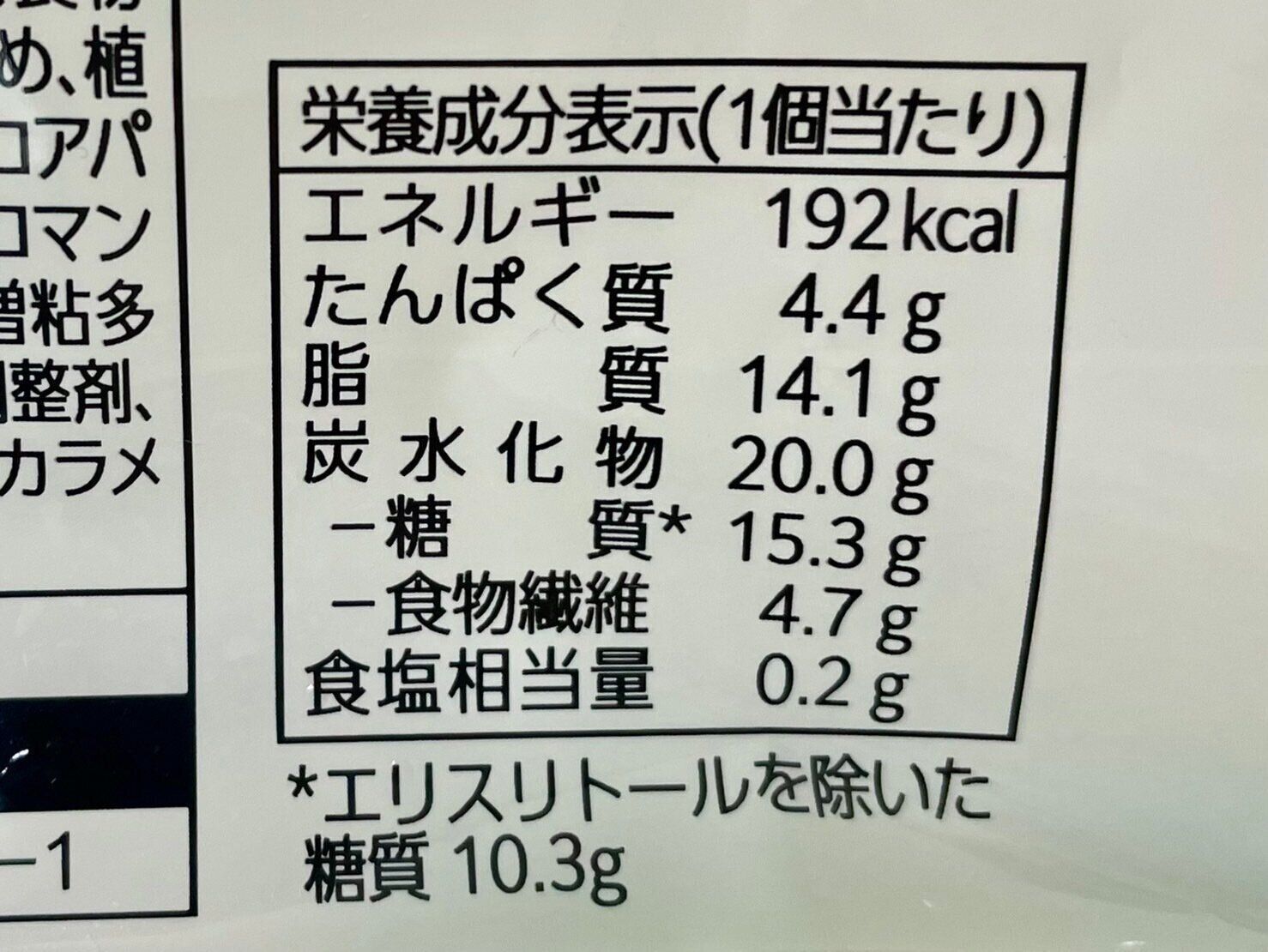 シャトレーゼの定番ロールケーキと比較して、糖質を50%カットした商品。糖質は1個当たり10.3g(エリスリトールを除く)です。