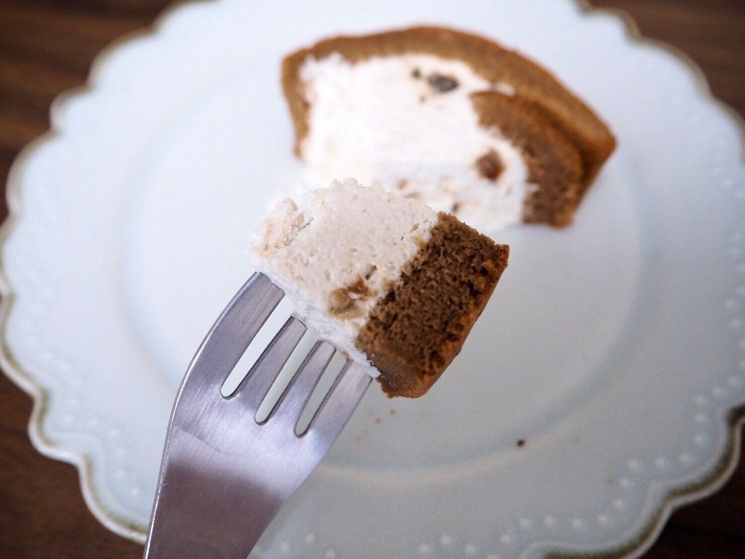 自社で煮出したコーヒーの染みこんだスポンジはふわふわ感もありつつもちっとした食感で、全くパサつきやもそもそとした感じはありませんでした。