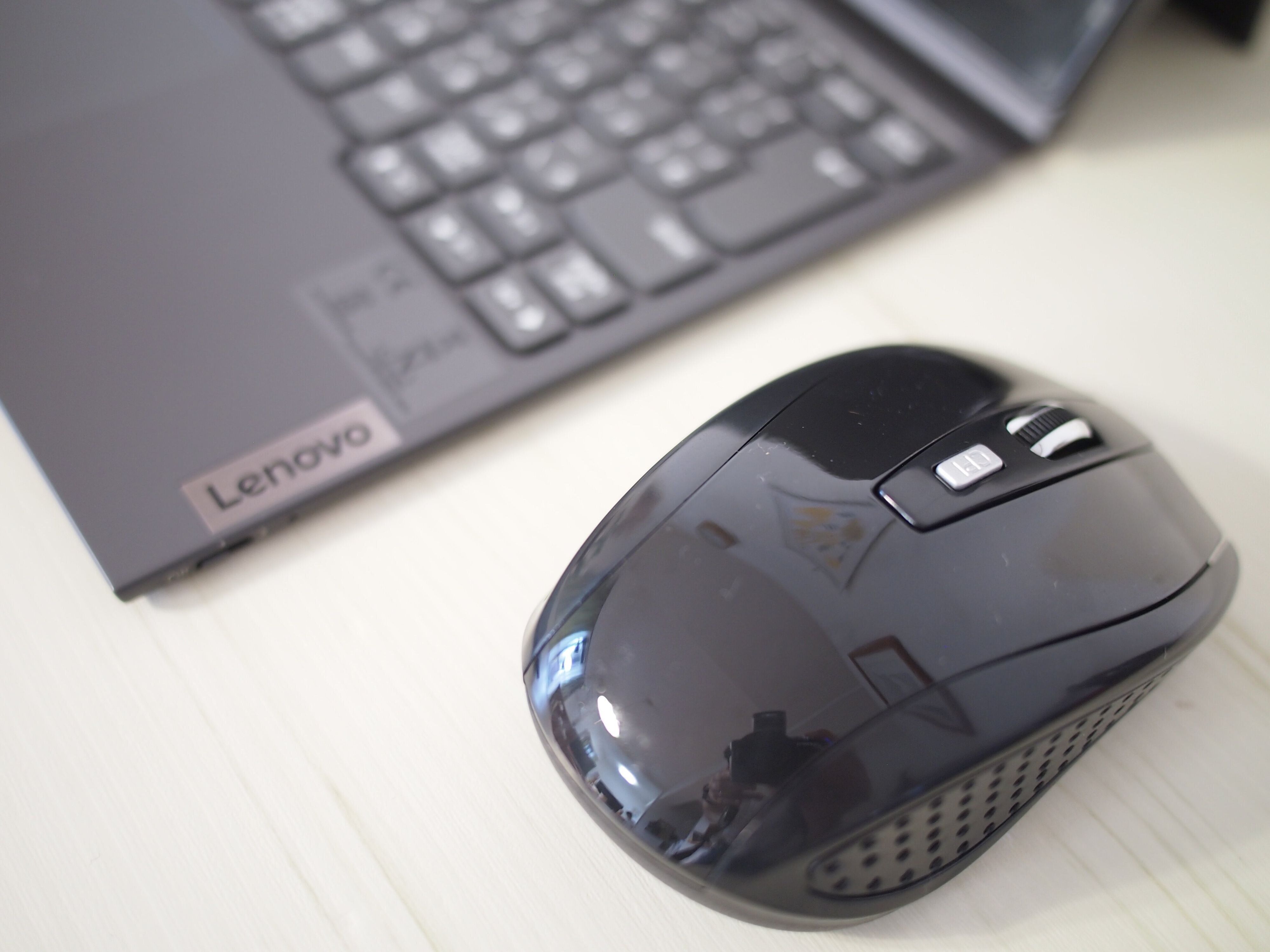 無線マウスのなかでは、USBに受信機を差し込む形式のものも多く販売されていますが、こちらは名前のとおりBluetoothなのでUSB端子を干渉することなく使うことができます。