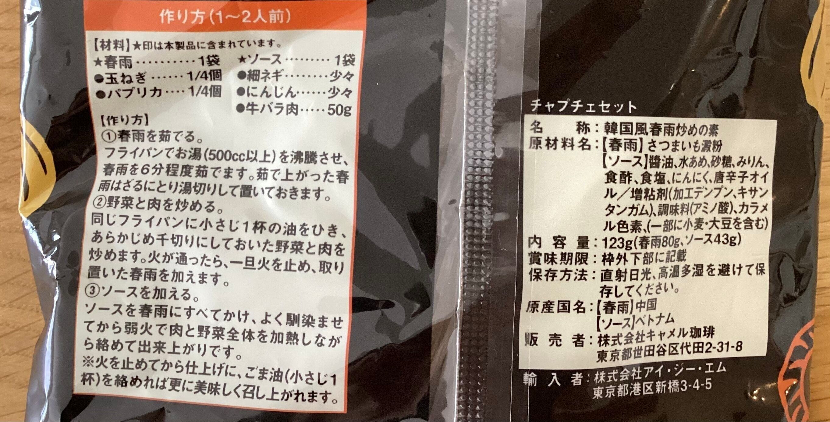 「本格的なチャプチェが簡単に作れる」というパッケージに惹かれてカルディで購入したチャプチェセットが、夕食のメニューで困った時に大助かりだったので、調理工程も含めてレビューします。