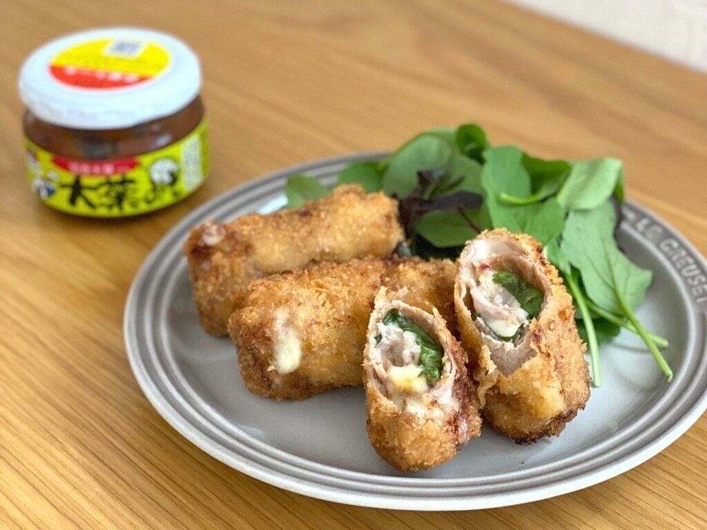 豚ロース肉に大葉みそをぬり、シソとチーズを巻いてフライにすると、ソースいらずの絶品おかずになります。