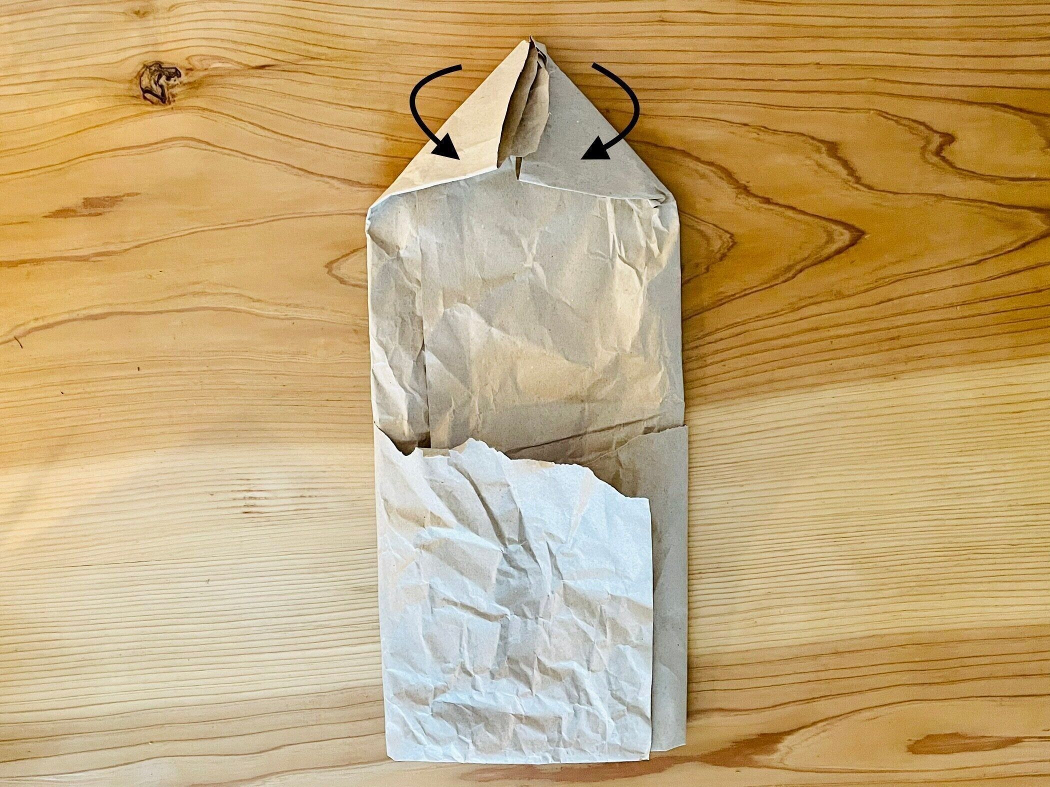 上部を三角に折って入れ込む