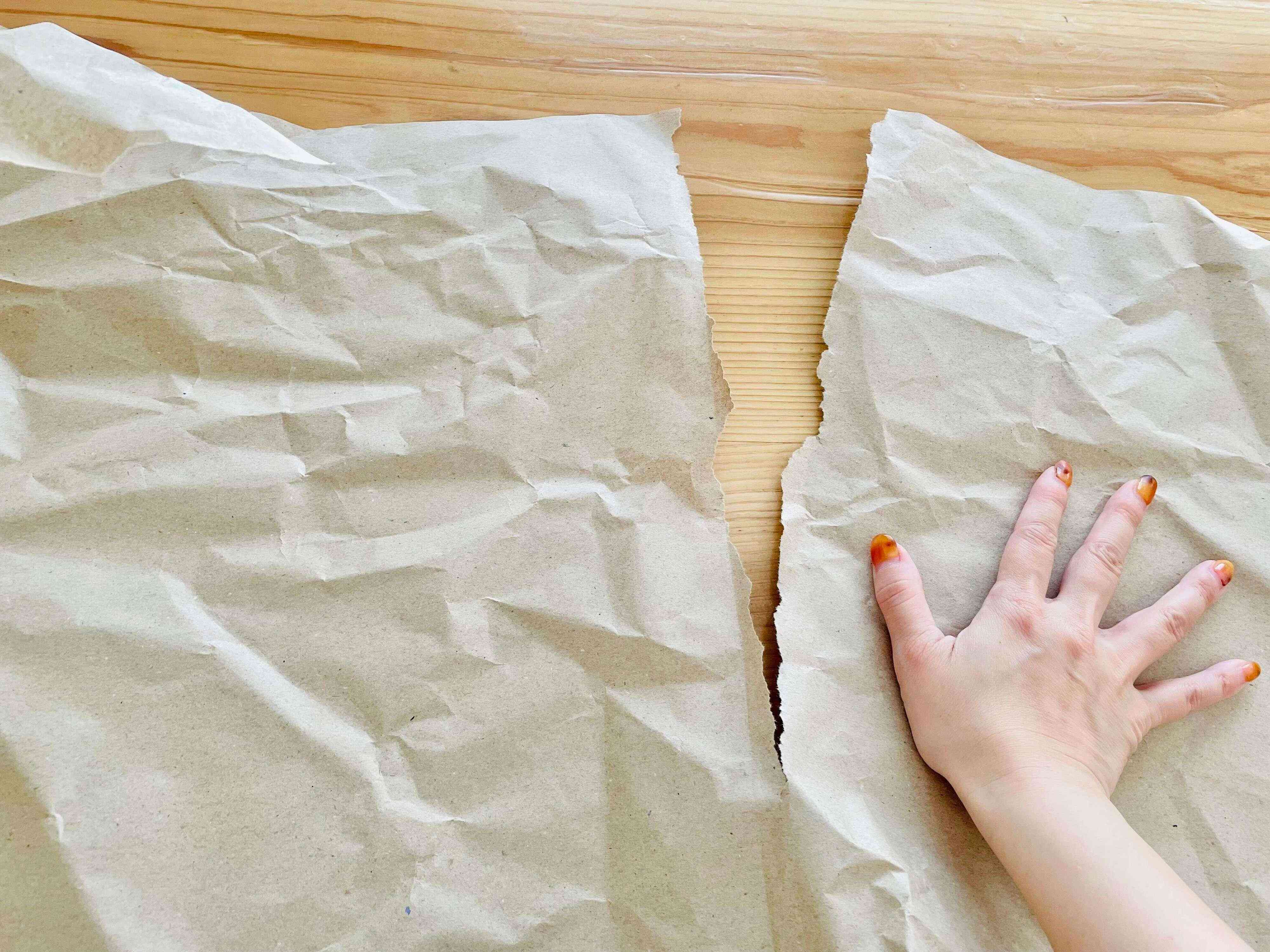 紙が大きくて折りにくい場合は、半分に切ってくださいね。キレイに切る必要はないので、折り目をつけてから手でちぎればOKです。