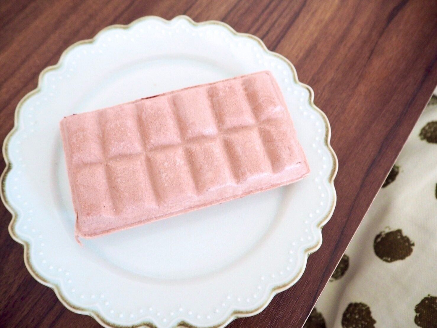 開封すると、中身はくすみピンクのモナカがお目見えです。