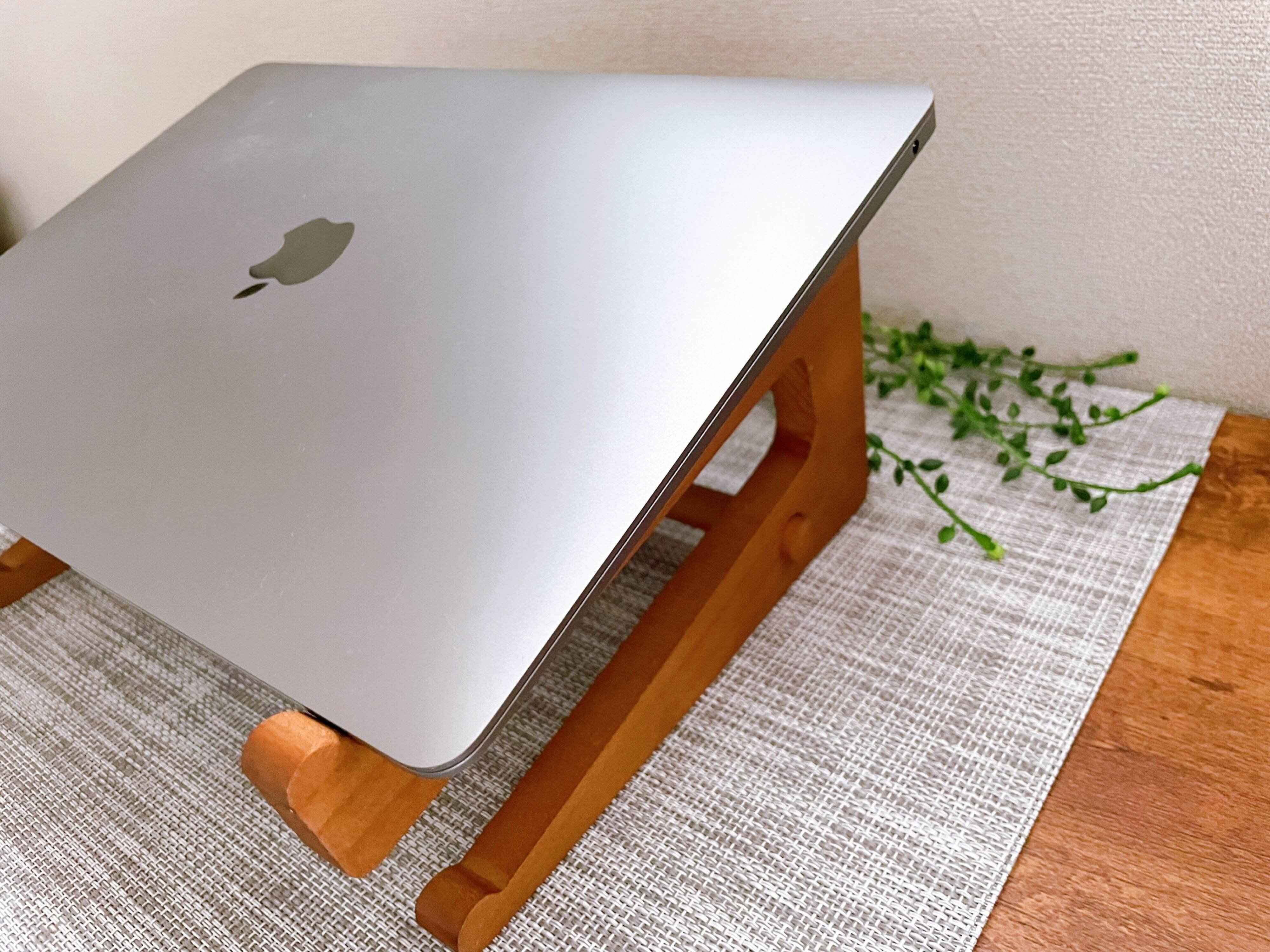 ノートパソコンを早速置いてみました。安定していて高さもちょうどいいです!