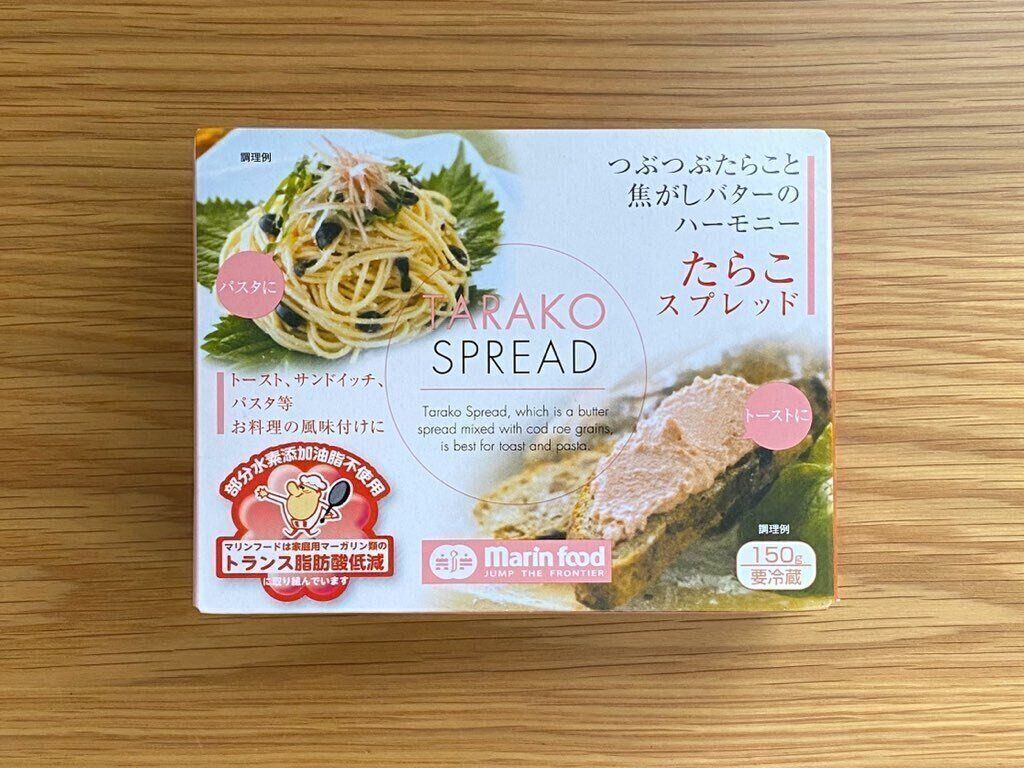 カルディの冷蔵コーナーで販売されている「たらこスプレッド」。つぶつぶ食感のたらこと焦がしバターの風味を手軽に楽しめる商品です。