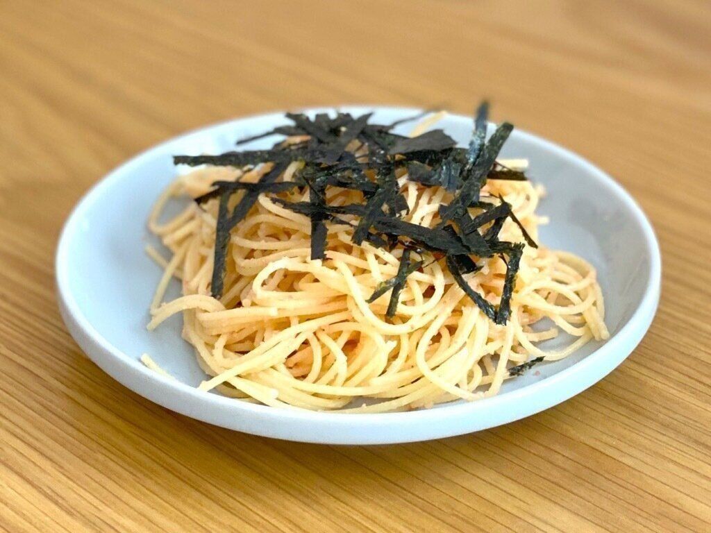 茹でたパスタにたらこスプレッドを和え、刻みのりをのせたら完成です。