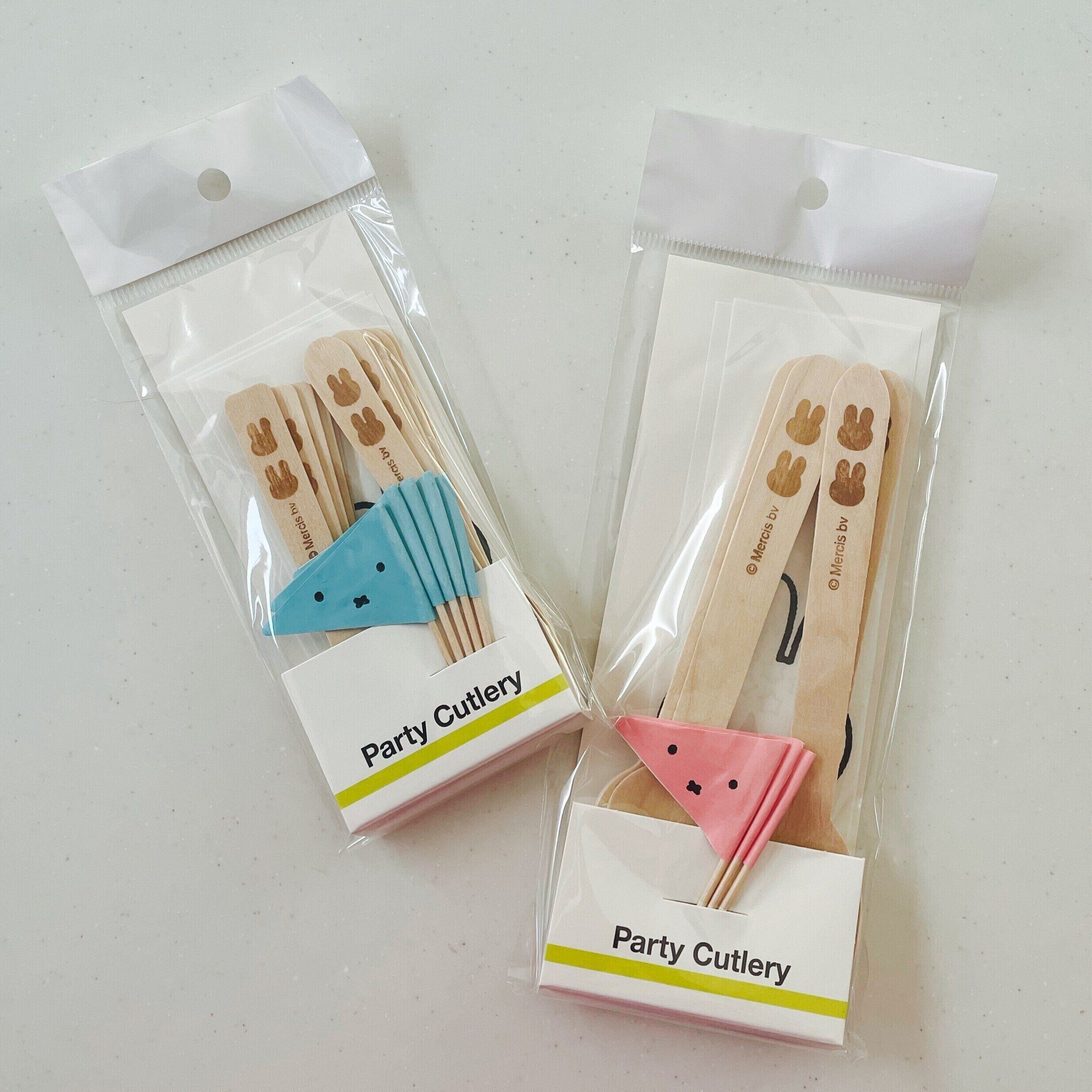 大人用(ミッフィー):木製フォーク&スプーン・ピック・袋 各3セット入り