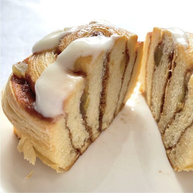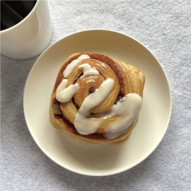 言わずもがな、シナモンロールを食べたことのあるかたは、ふかふかの生地と、シナモン香るチーズフロスティングがマッチして美味しいのをご存知かと思いますが、角切りのさつまいもの甘さとねっとりとした歯応えが口の中でアクセントになり満足感がアップします。