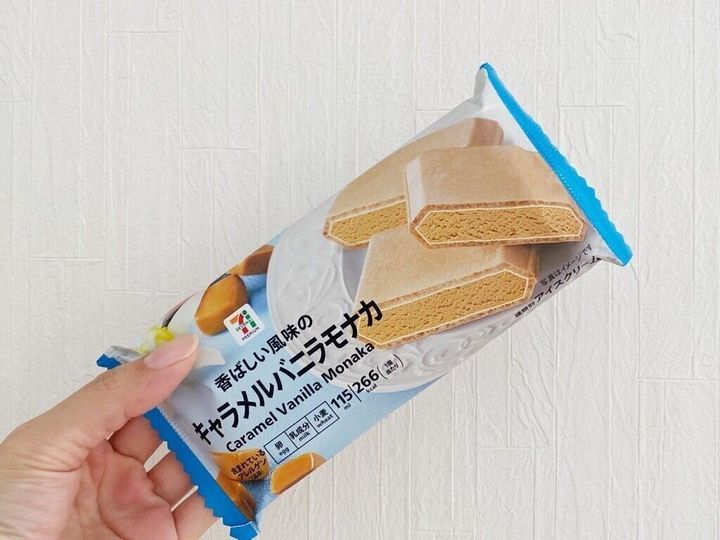 バニラビーンズ入りのキャラメルアイスを小麦ブラン入りの香ばしいモナカ皮でサンドした、セブンイレブンオリジナルのアイスです。