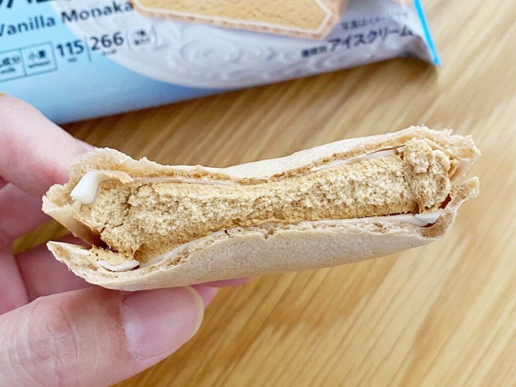 見た目はいたって普通のモナカですが、シンプルなこの皮の部分もアイス全体のクオリティを上げてくれます。