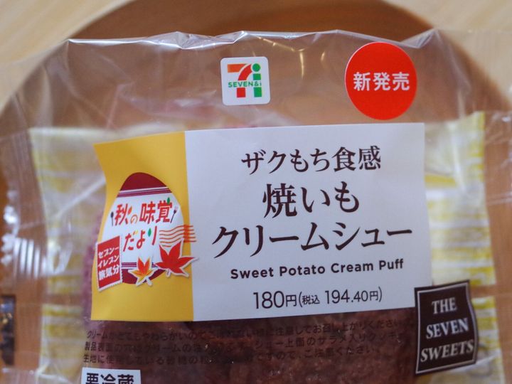筆者が気になったのは、セブンの「ザクもち食感 焼いもクリームシュー」。セブンでは、素材にこだわった食材をふんだんに使った秋グルメのラインナップを強化中とのこと。焼いものシュークリームは、気にならずにはいられません! 早速、実食レポいたします。