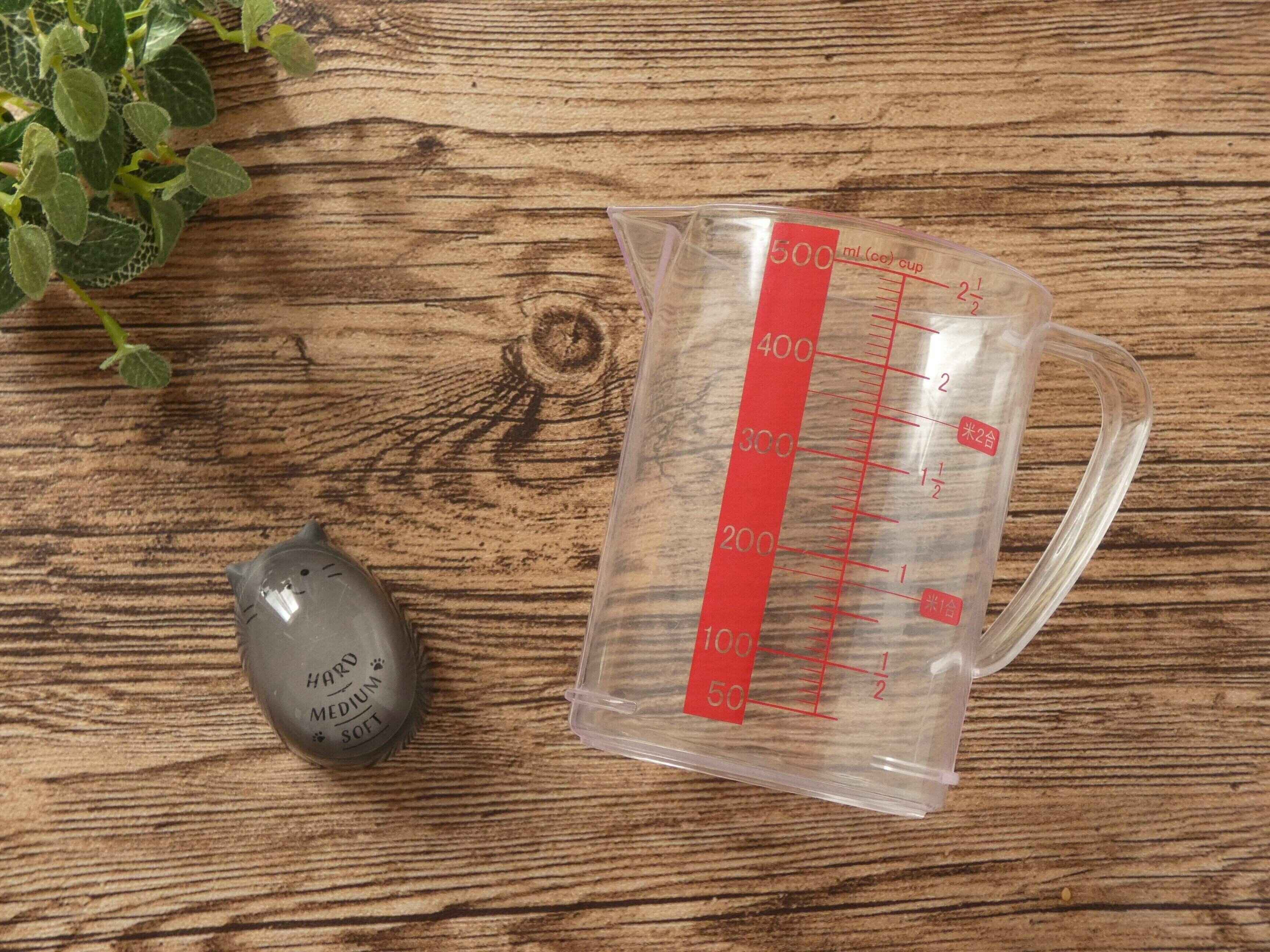 エッグタイマーも大容量の計量カップもなくてもいいですが、使ってみると便利。手放せないアイテムになりました。ほんの少しですが家事がラクになるので、ぜひお試しください。