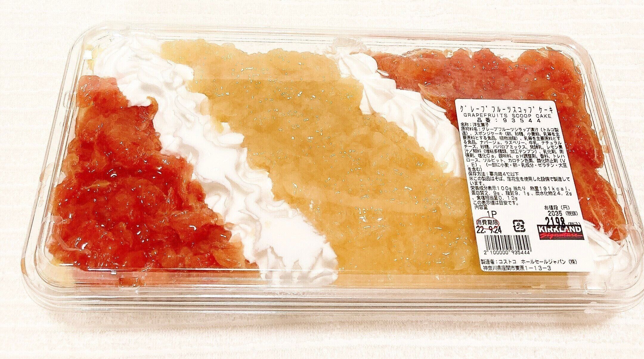 コストコでは長細い容器に入ったスコップケーキがよく売られていますが、今回はグレープフルーツスコップケーキが登場!