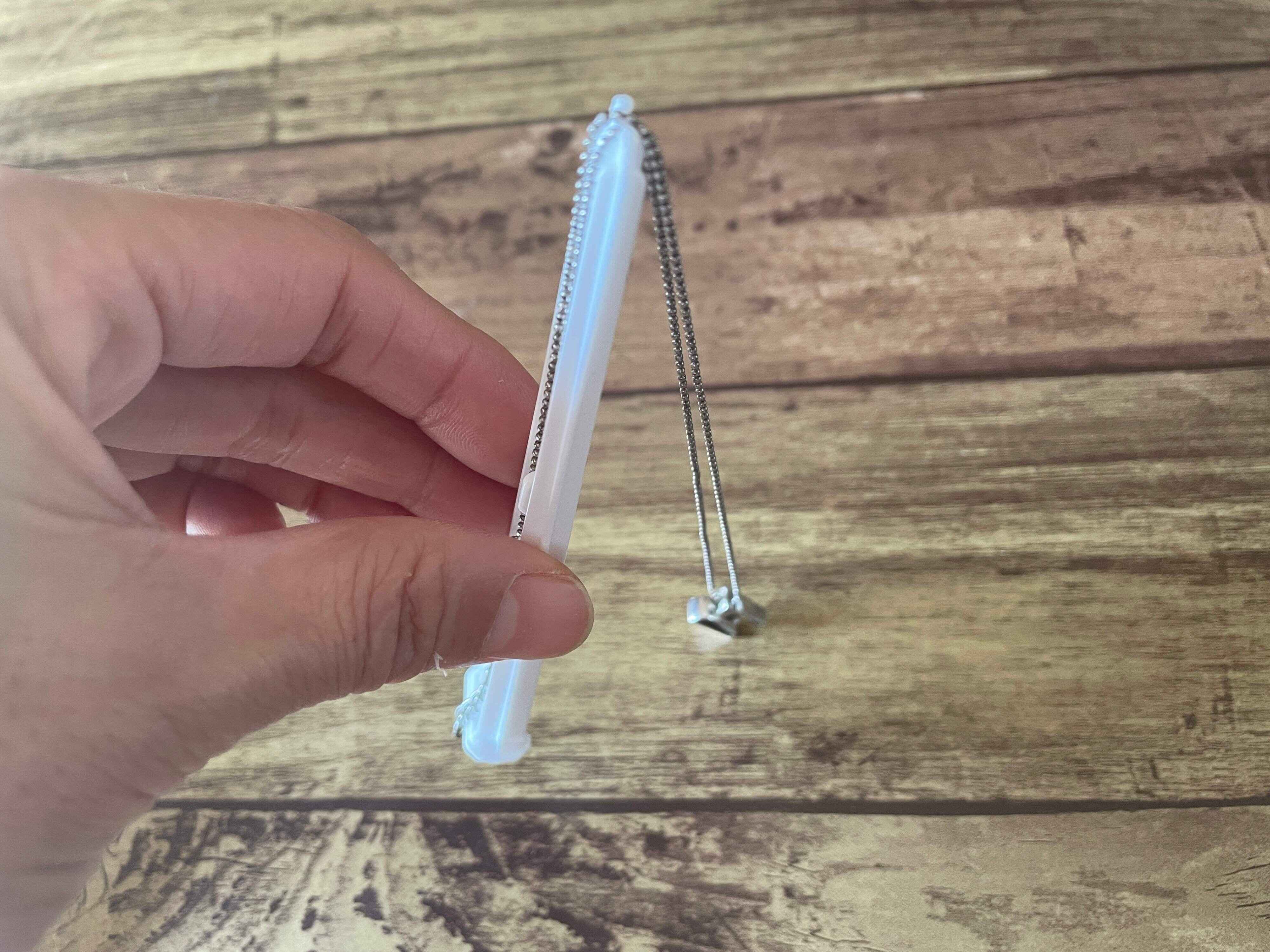 まずは蓋を外し、ネックレスをフックにかけます。