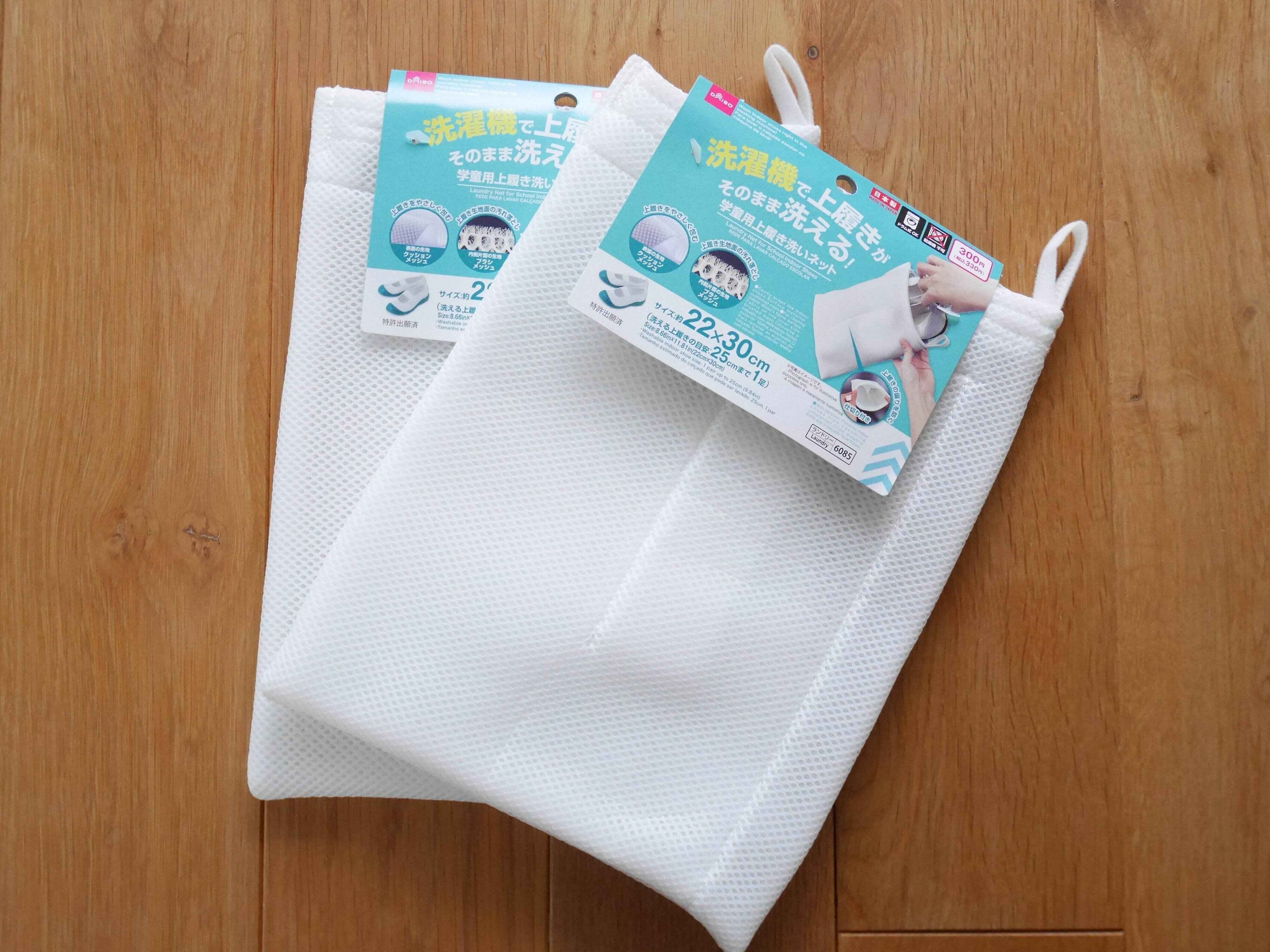 今回は、忙しい主婦の味方、ダイソーの「学童用上履き洗いネット」を紹介します。
