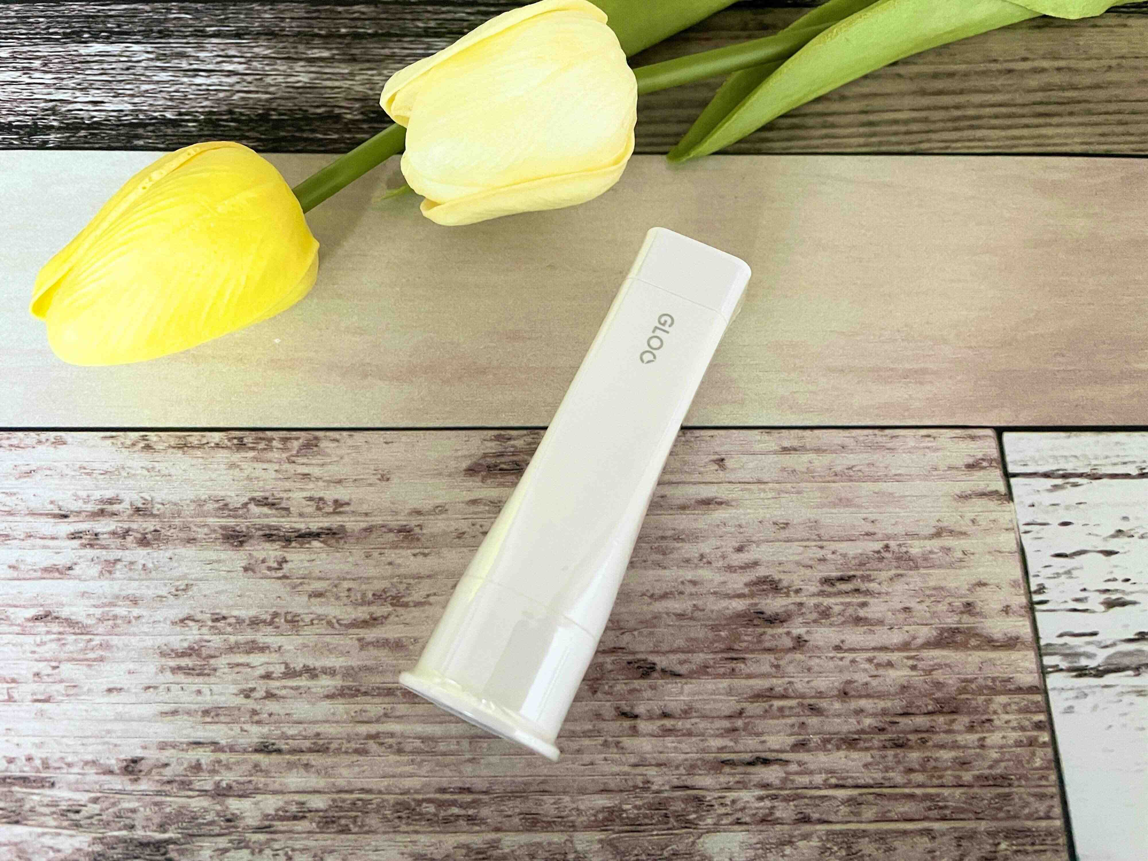 一目でわかる他のスティックのりとの違いは、その形。「GLOO」は、角形なんです。