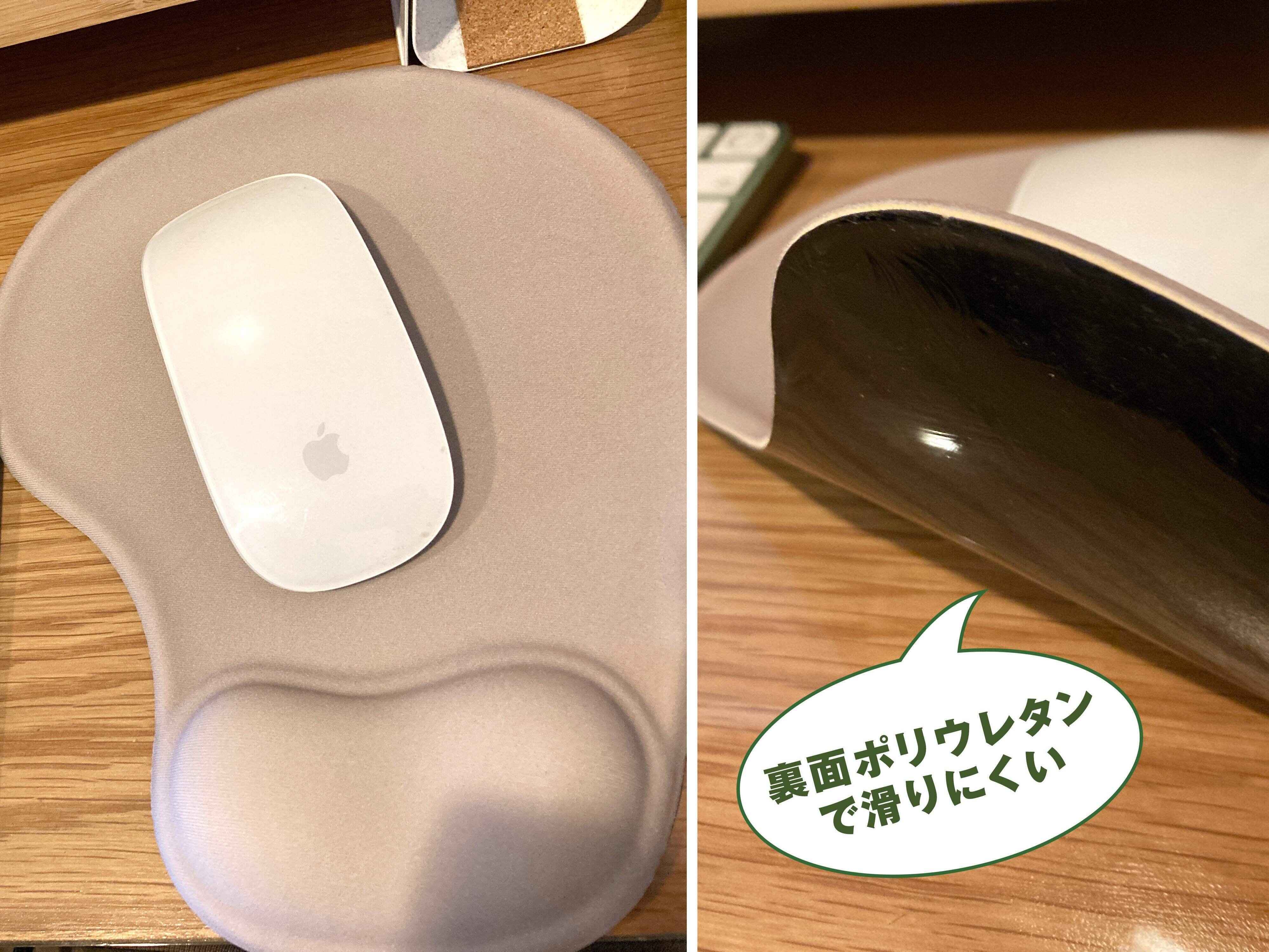 パッドの裏面がポリウレタン素材で滑り止めのようになっているため、マウス使用時に動かない所もメリットです。