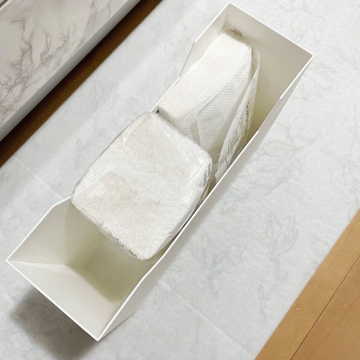 シンク上の吊戸棚にしまってあるので、ケースが空になると夫も補充してくれるようになりました。