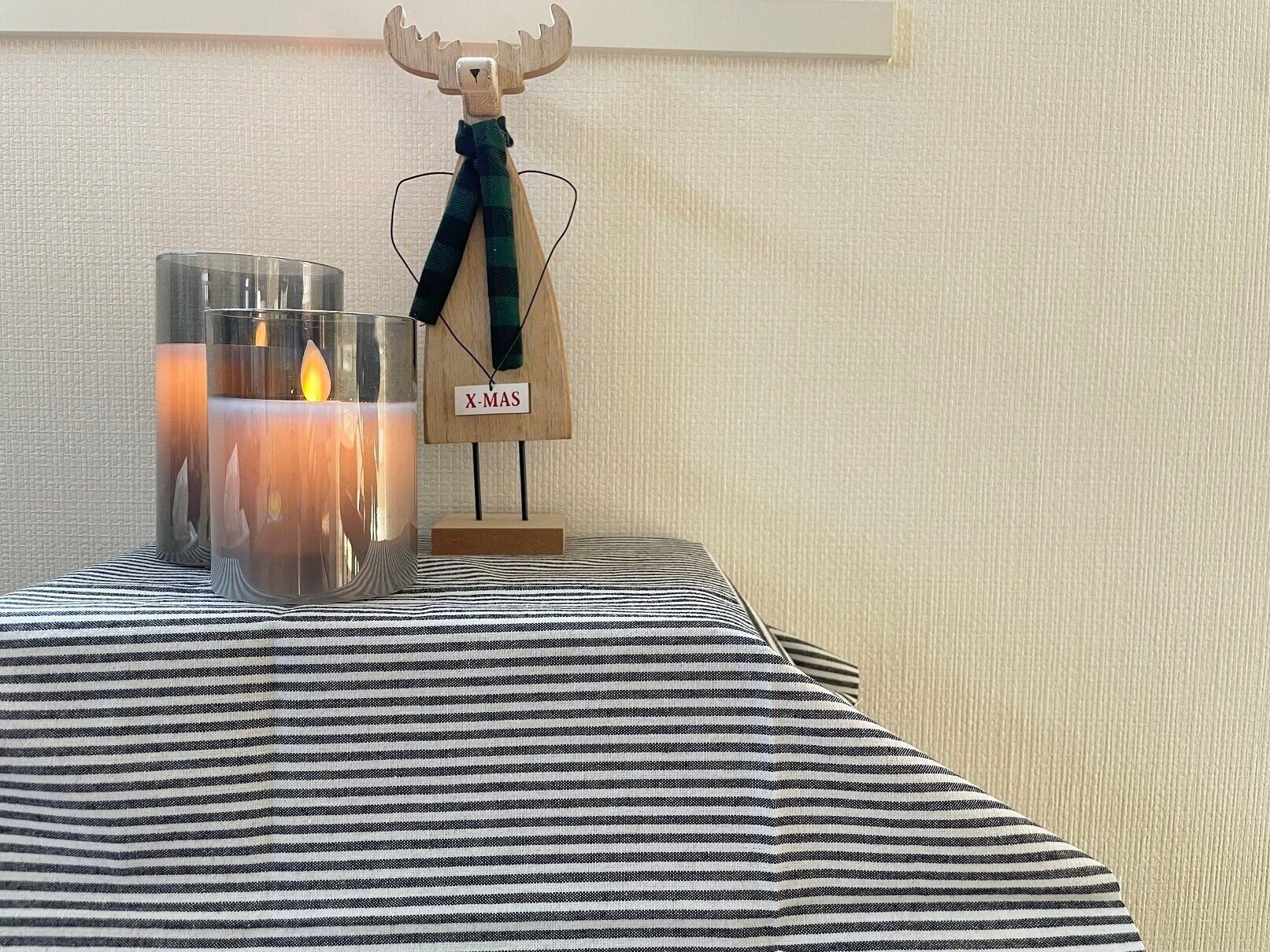 アクリル仕切棚に好きな布を掛けてインテリア小物を置くと、素敵なフォーカルポイントとなります。普段は小物を整理する棚として実用的に使い、季節イベント時や、来客時に魅せるインテリアスペースとして活用することもできます。