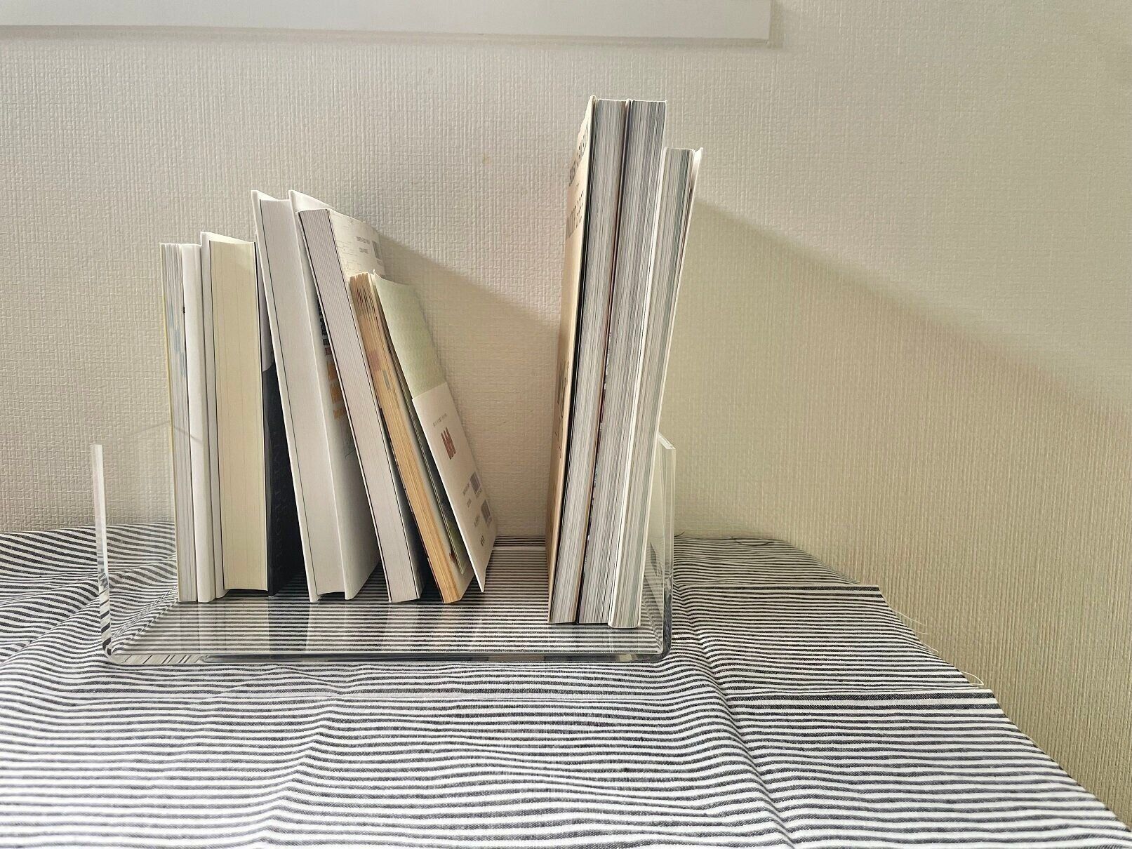 アクリル仕切棚を逆さ向きにすると、簡易的な本棚の完成です。そこまで本が多くない方は、これ1台で本棚として利用できるでしょう。