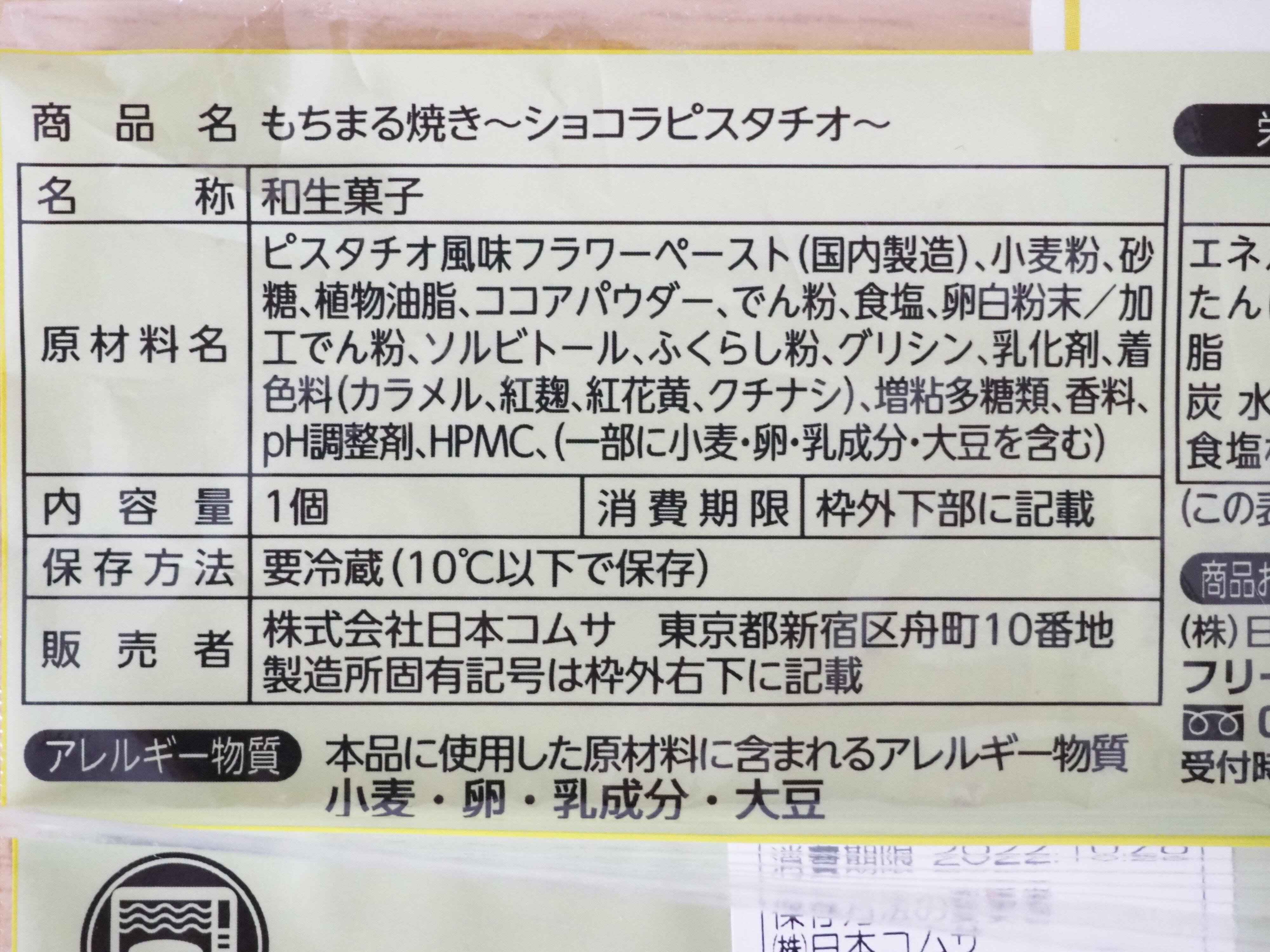 「もちまる焼き ショコラピスタチオ」は162円で、スイーツを扱う冷蔵コーナーで見つけることができました。