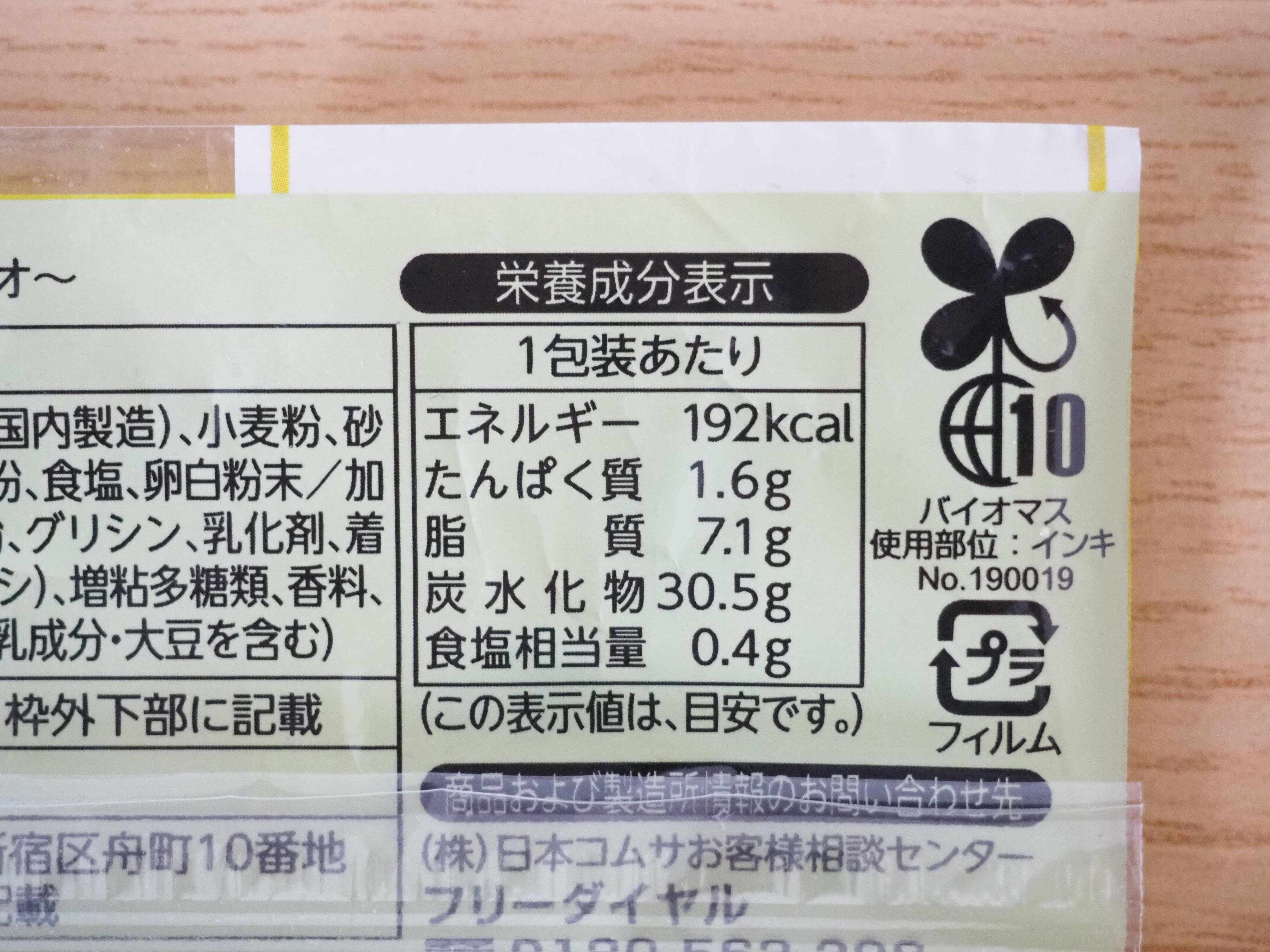 カロリーは192kcalです。なお私が購入したものの消費期限は、購入日を含む4日でした。