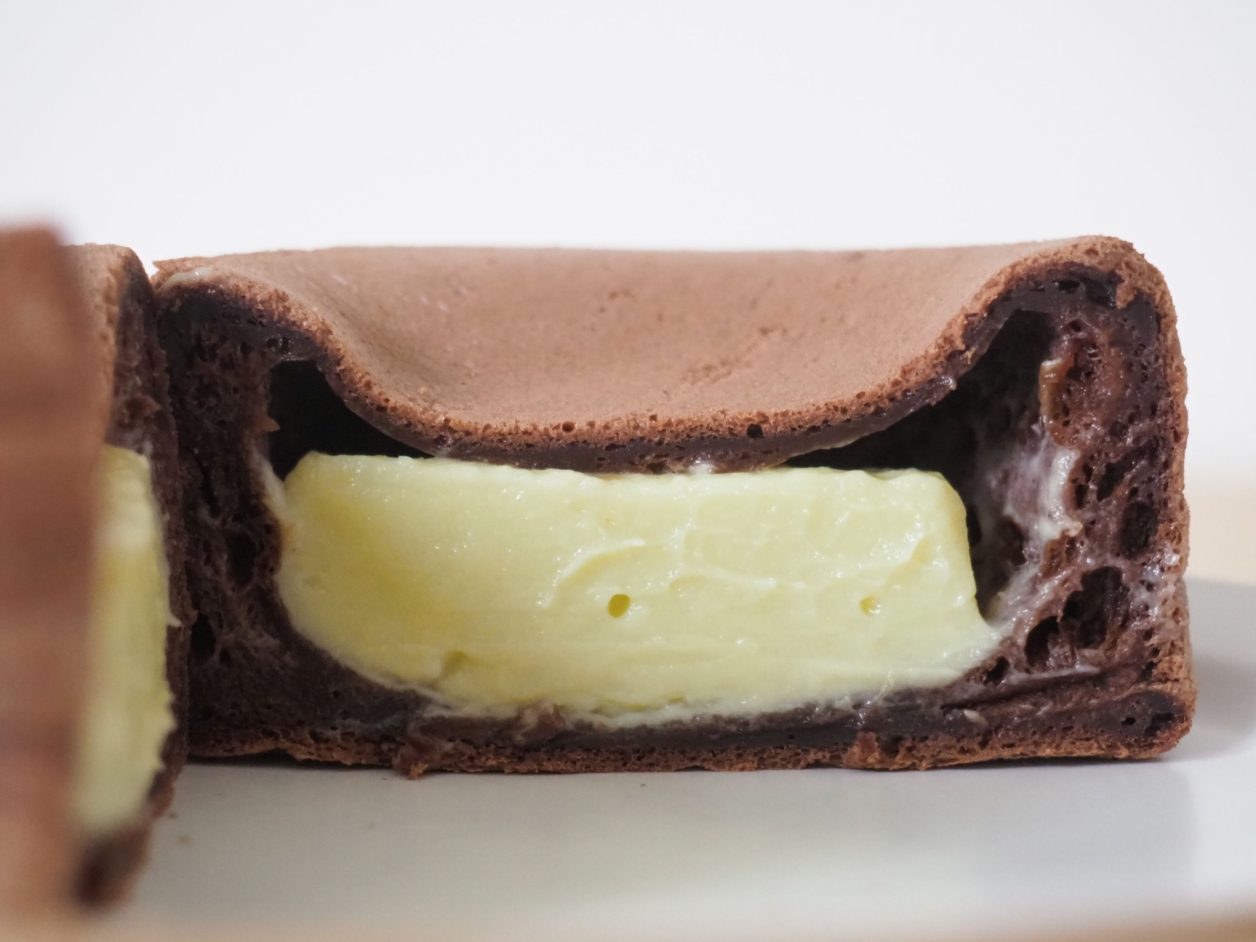 せっかくなので、もう半分は温めてみました。すると、チョコレートの香りがより濃くなりました!生地は伸びがよくなり、温める前よりも、もちもち感が増したように感じます。