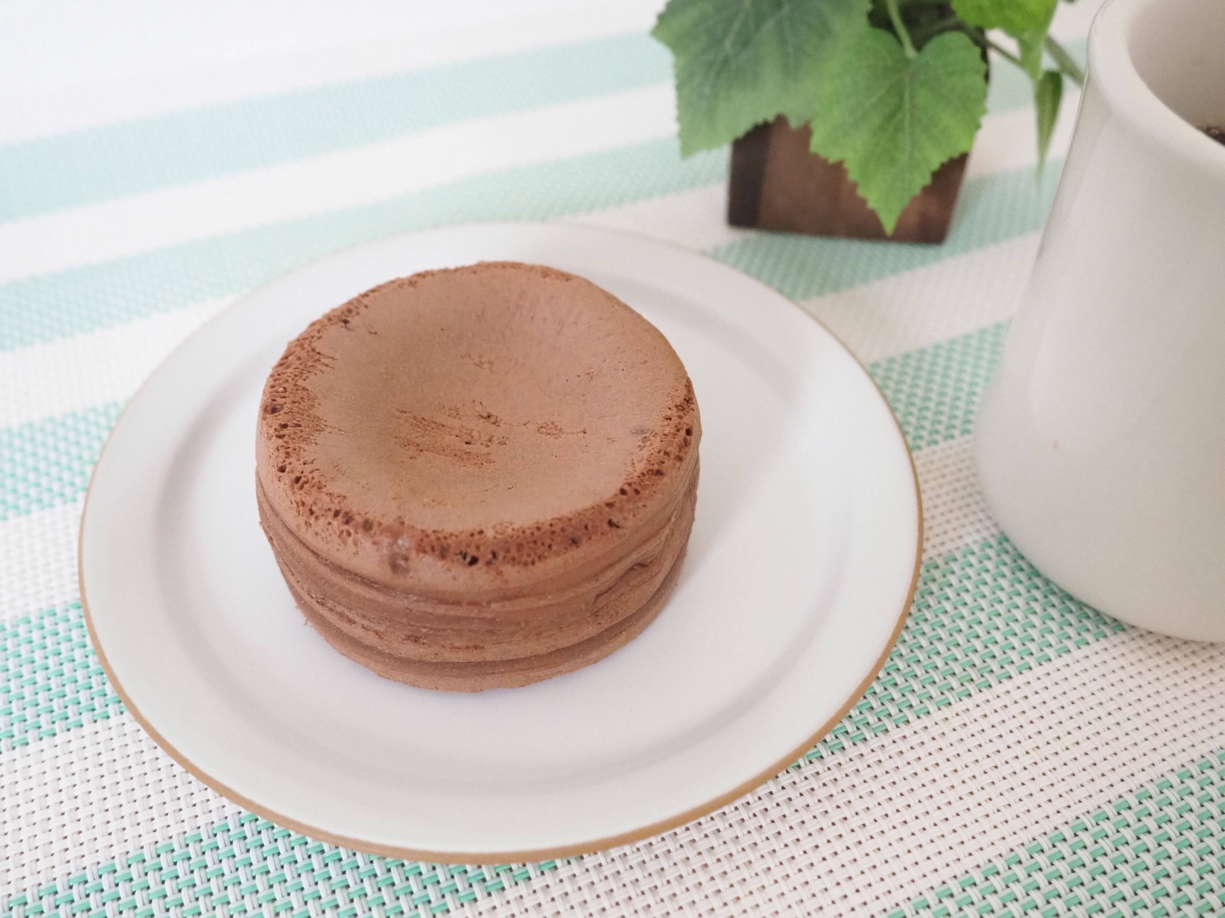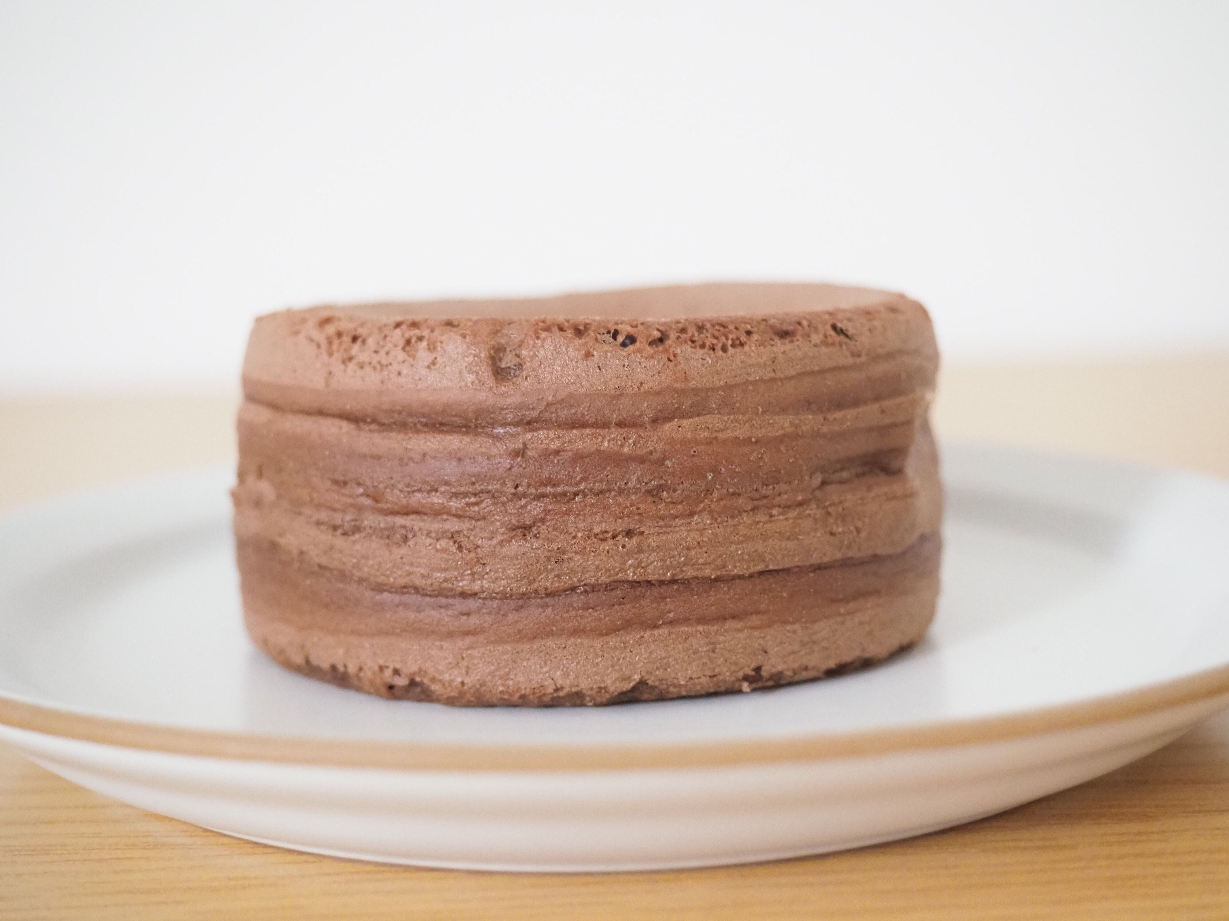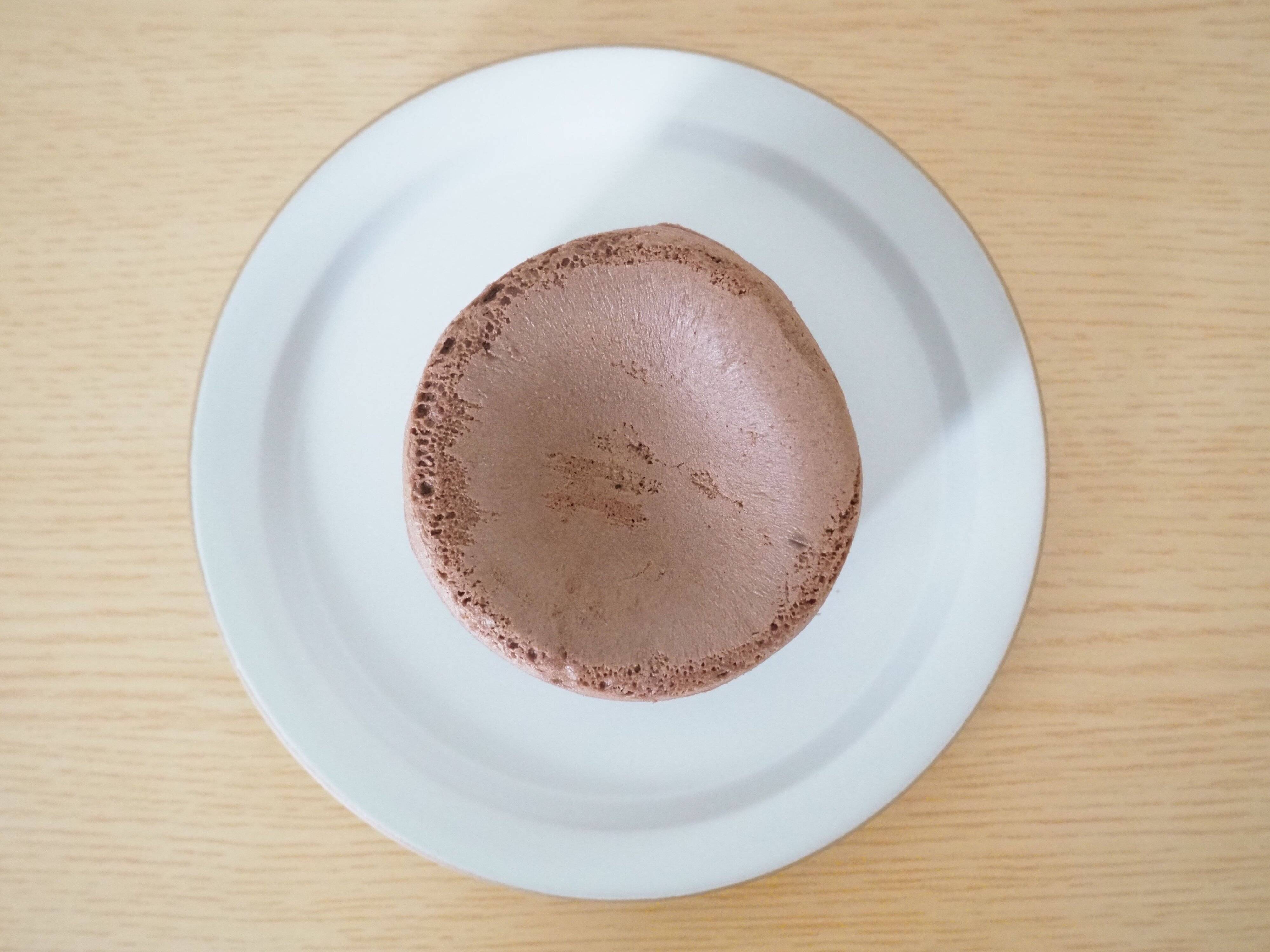 開封して取り出してみると、現れたのは茶色い円盤型のスイーツ。やや武骨な見た目をしていますが、開封と同時に漂うチョコレートの香りが幸せな気分にしてくれます。