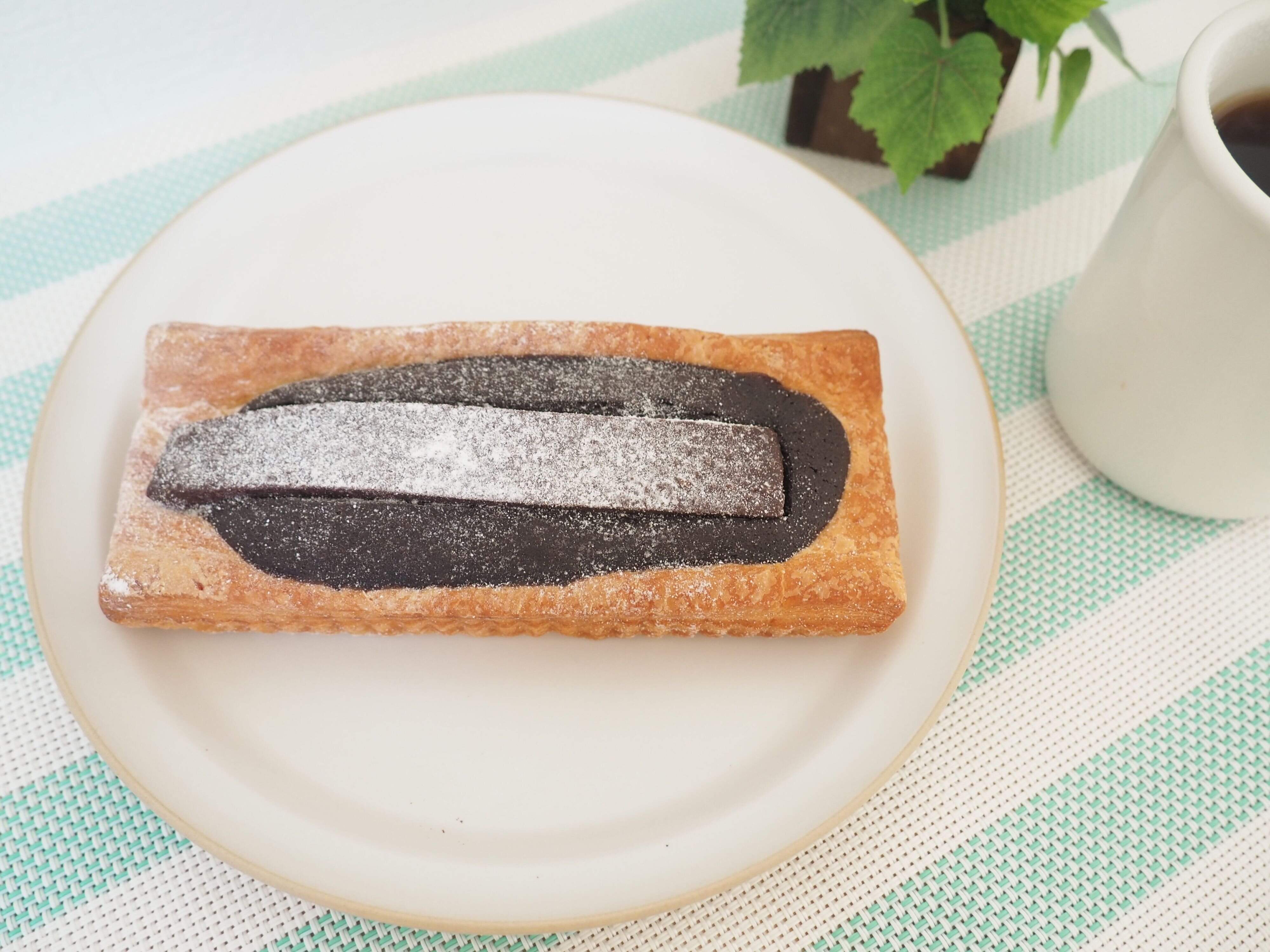 早速開封してみると、チョコレートの甘い香りがふわり。長方形のデニッシュで、中心にトッピングされた存在感のあるチョコプレートが贅沢な印象を演出しています。