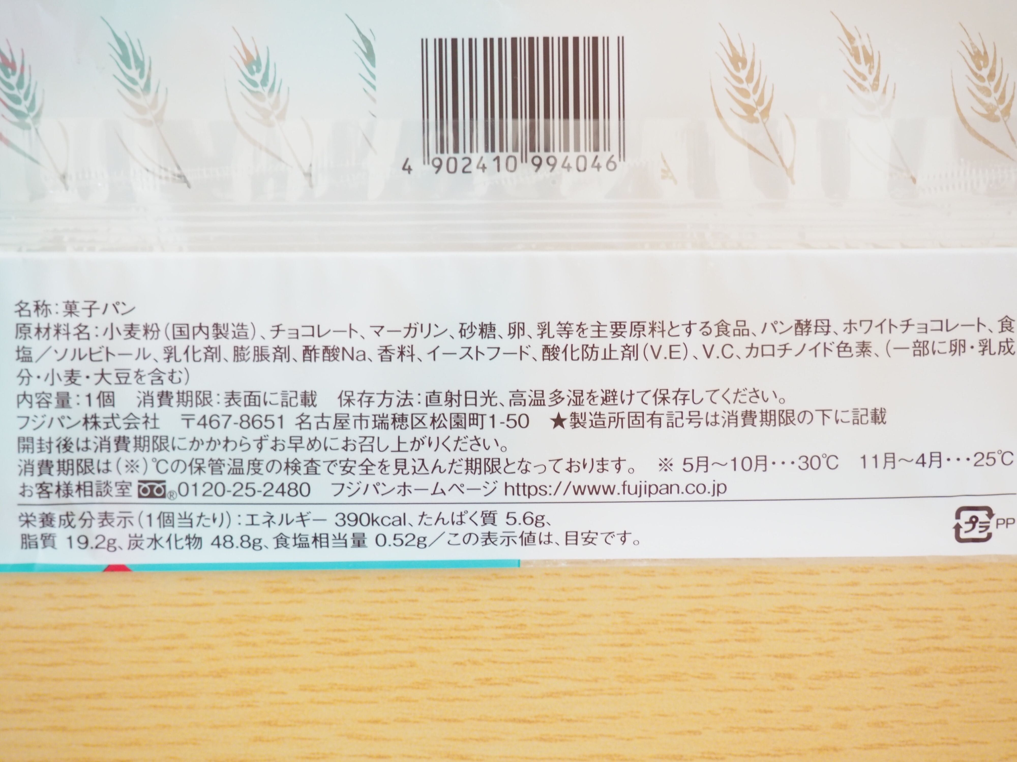 製造を担当するのは「ネオバターロール」や「本仕込」でおなじみのフジパン株式会社。1個当たりのカロリーは390kcalです。