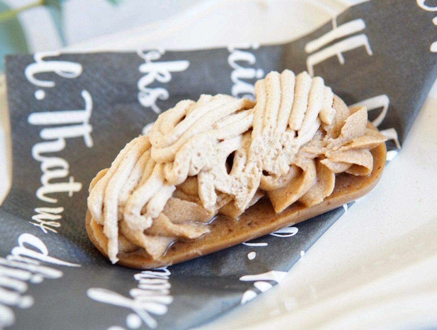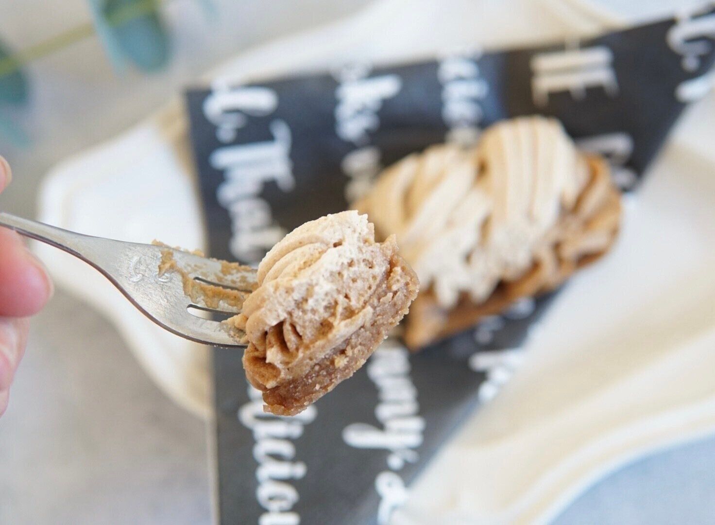 色も舌触りも異なる3種類のクリームを1種類ずつ味わってみたり、まとめて食べてみたり。若干小ぶりながらも、マロンの味わいとがっつりとした甘みを存分に堪能できるスイーツに仕上がっています。