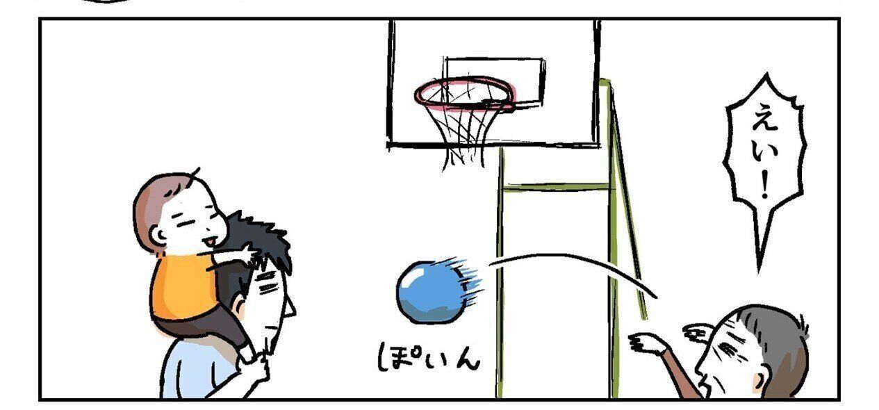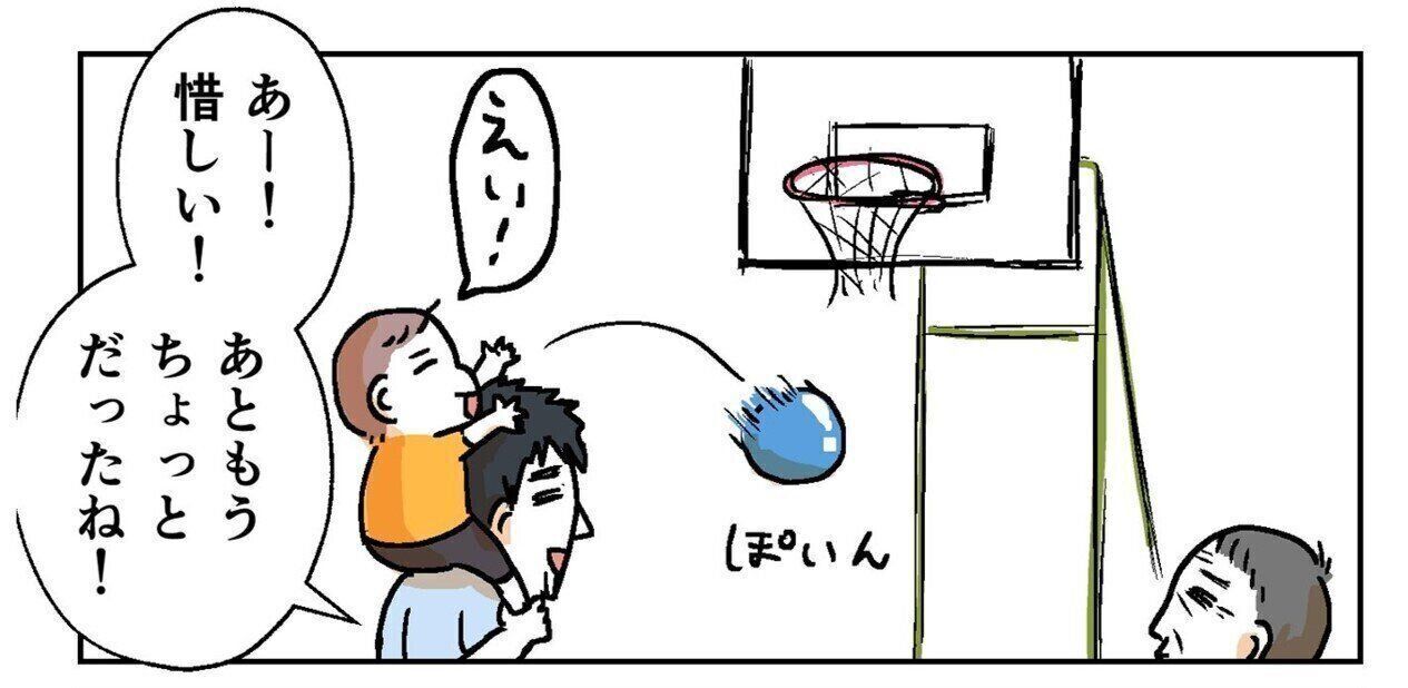ひいばぁさんも、ボールをゴールに向けて投げました。こちらも、入りませんでしたが、たーちゃんと同じくらいの高さまでボールが飛んでいます!
