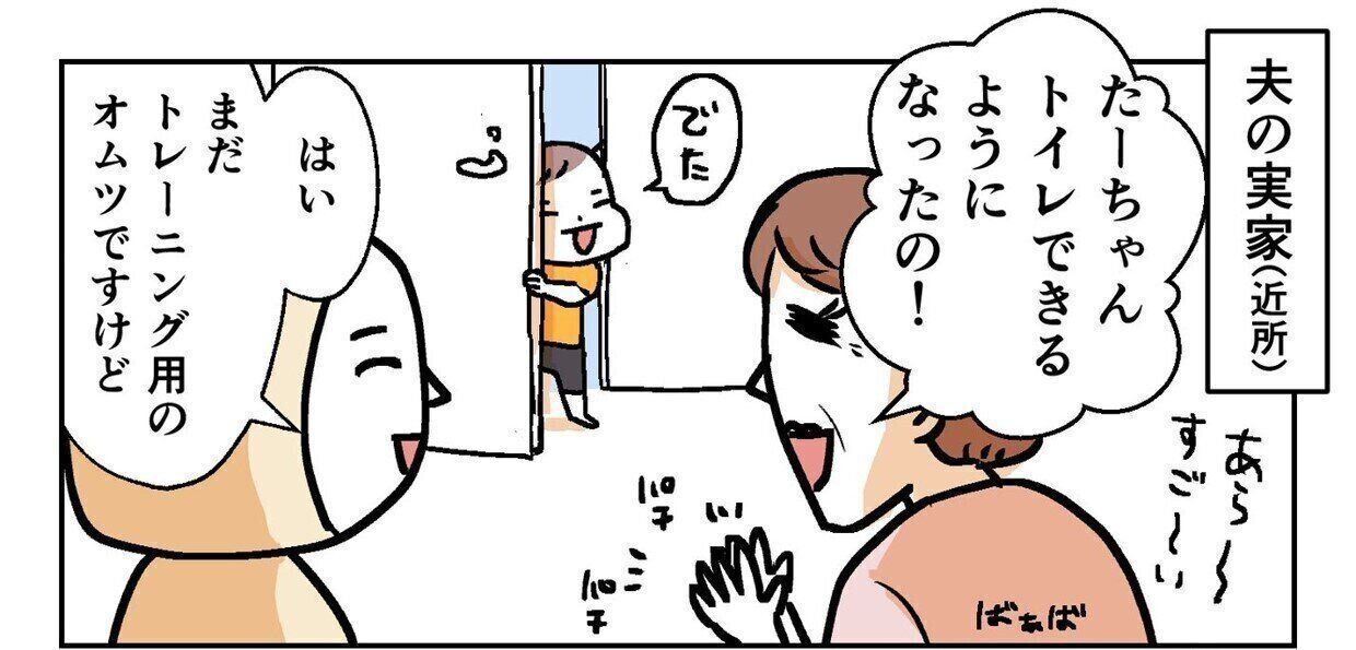 近所にあるパパの実家に遊びに来ているみかんさんとたーちゃん。ばぁばがトイレに行くたーくんを褒めると……。