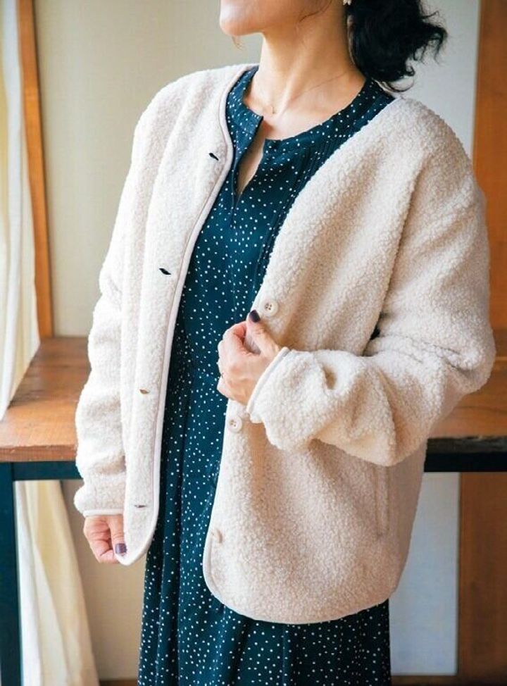 何にでも合わせやすい色とデザイン。ちょっとしたお出かけから学校行事までOK。「ボアの毛足が長過ぎず着太りしないのも〇」。