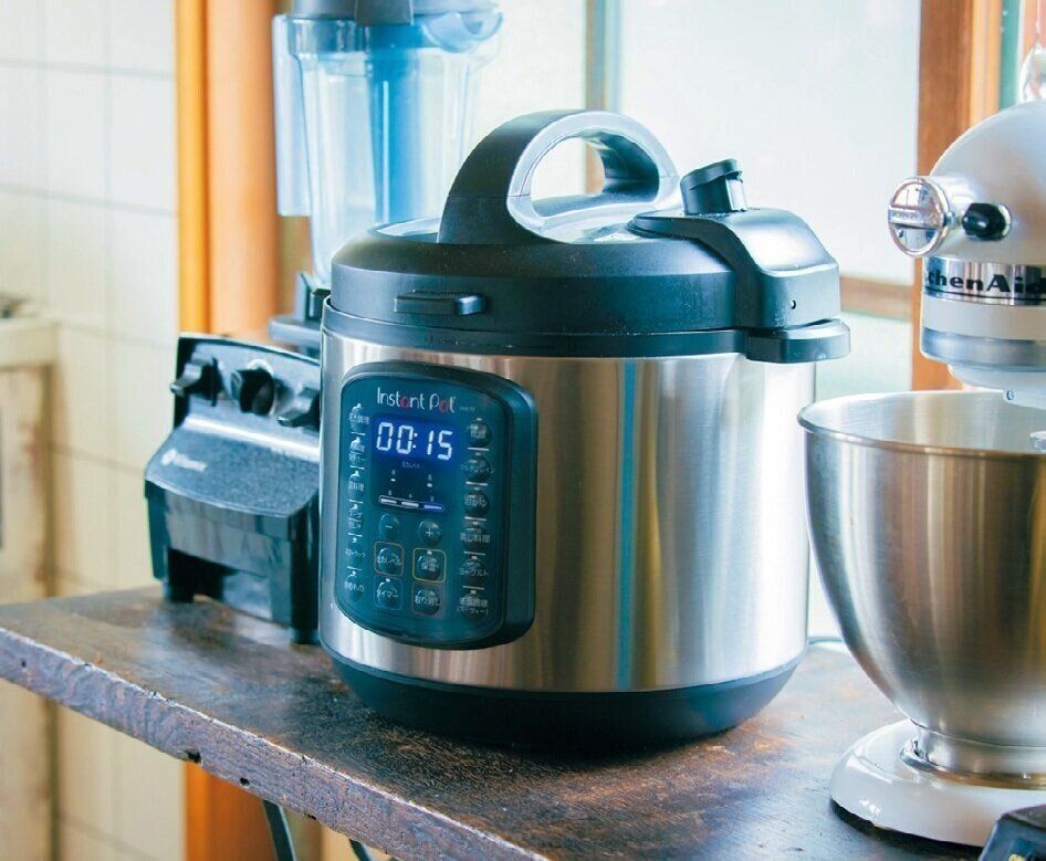 食材を入れてボタンを押すだけで低温調理、圧力調理、蒸しなど1台で9役の電気圧力鍋。「鶏ハム、ローストビーフ、カレーなどが絶品」。