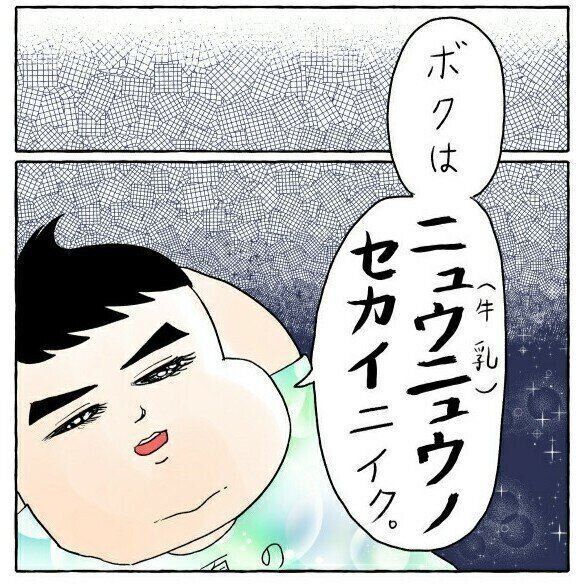 「ボクはニュウニュウ(牛乳)ノセカイニイク」