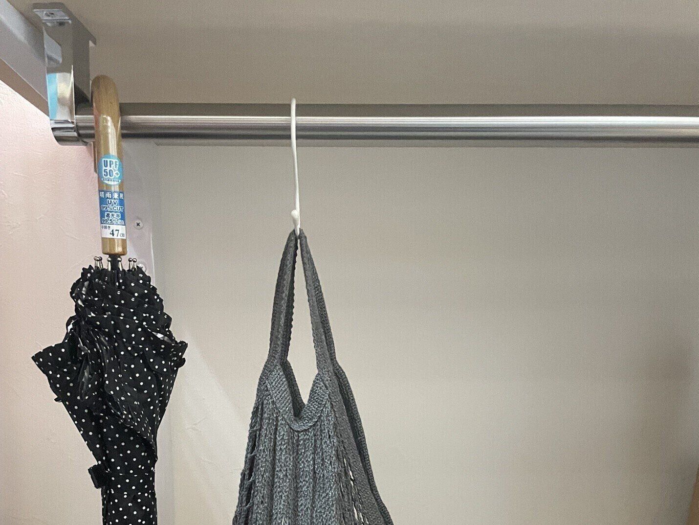 床置きしない工夫1:ハンガーパイプの活用