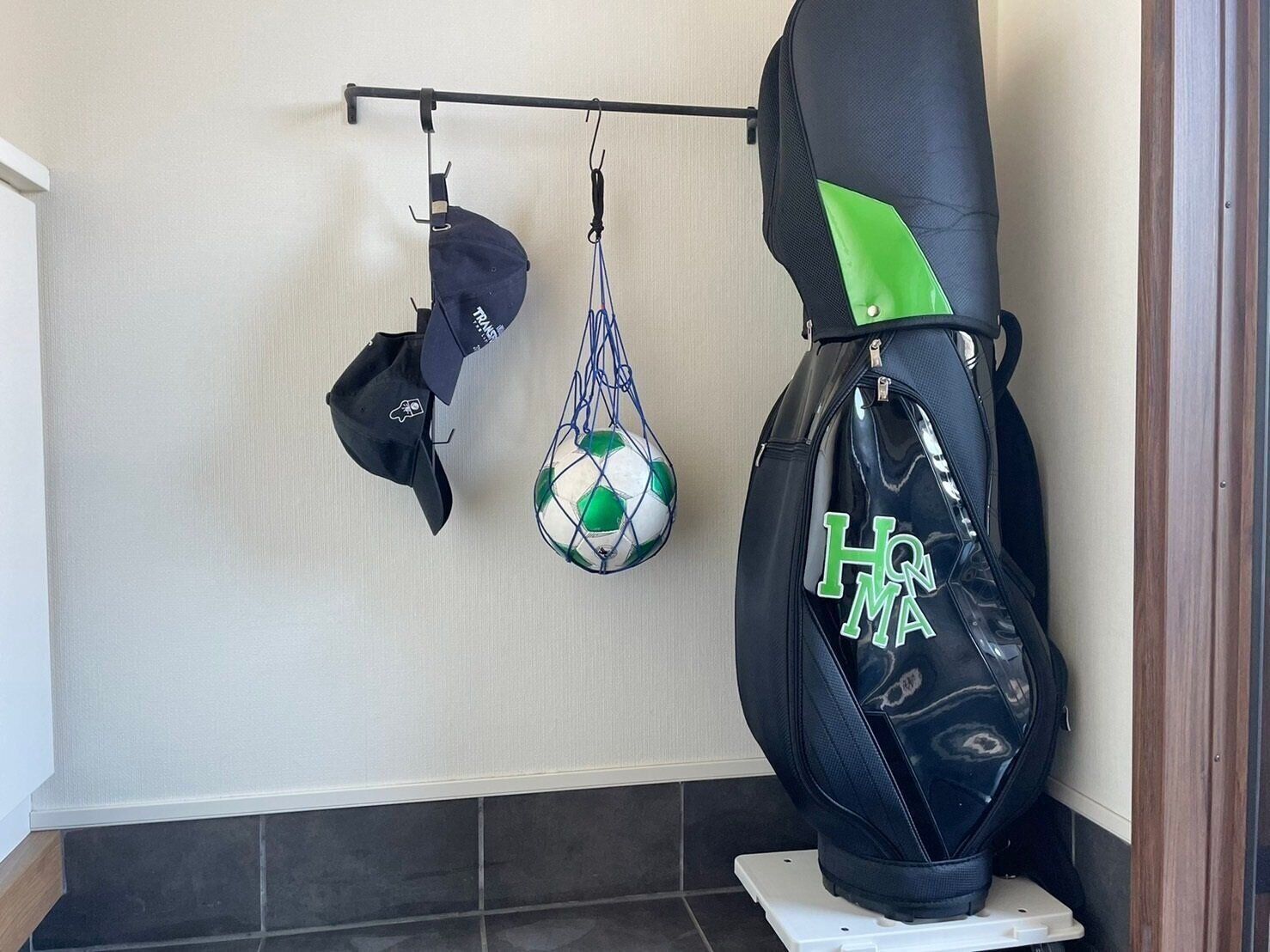 キャンプ道具などのアウトドア用品や、ゴルフバック、サッカーボールなどのスポーツ用品は、とくに土汚れなどが目立つため、玄関に置くのは避けたいところです。毎日使うものでなければ、外部の物置や、家の中の他の収納場所を工夫し、それらの定位置を確保するのがおすすめです。