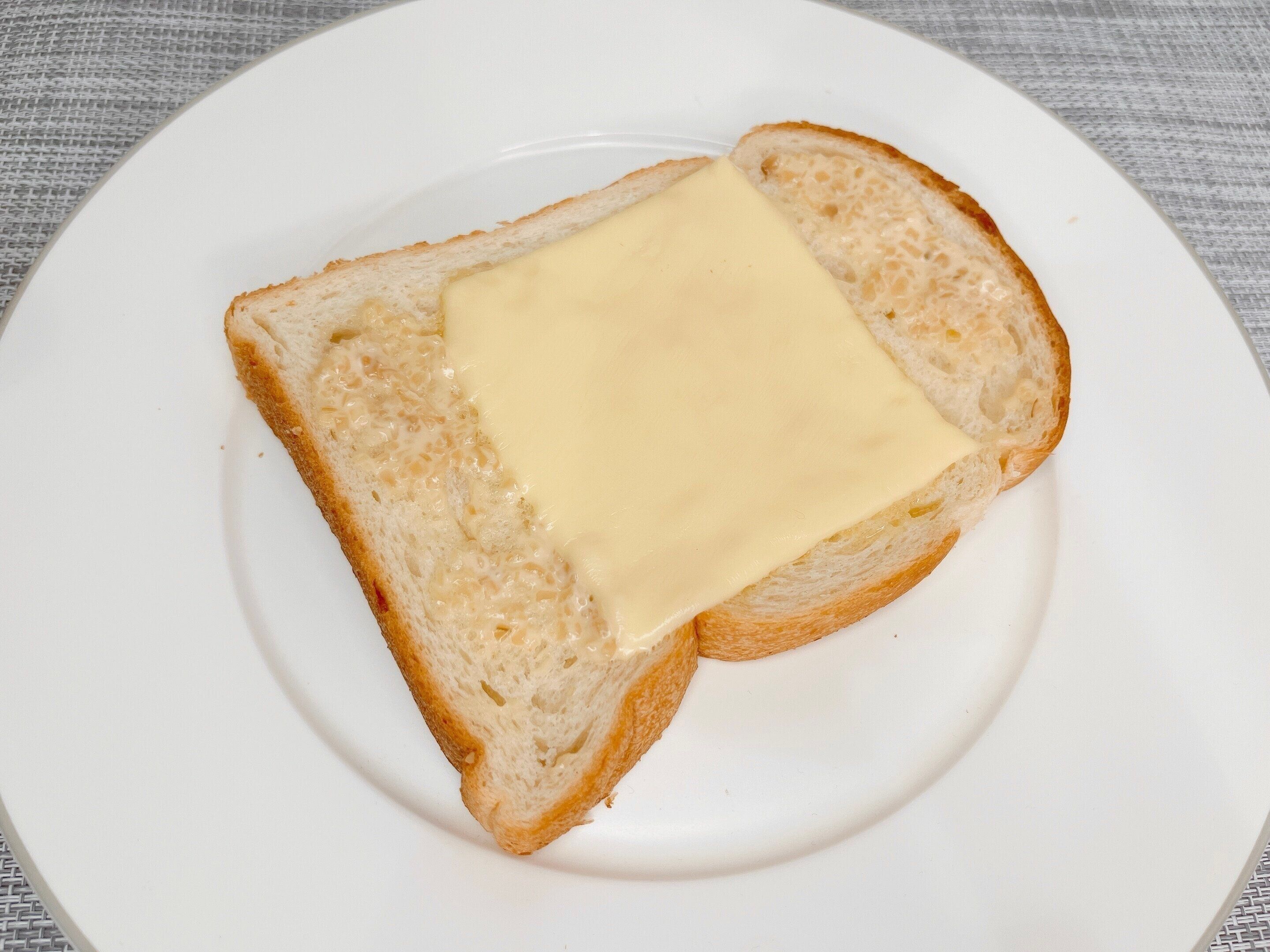いぶりがっこのタルタルソースはご飯にも合いますが、トーストとの相性も抜群です!食パンにいぶりがっこのタルタルソースを塗り、その上にチーズをのせてオーブントースターで焼いたら完成です。