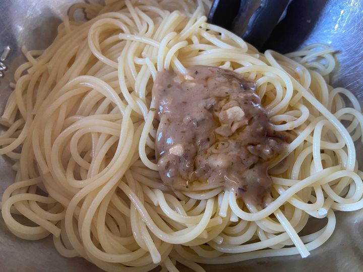同じシリーズのペペロンチーノソースが大好きでよく買うのですが、アンチョビの旨みがプラスされたシンプルなオイル系ソース、食べる前から期待が高まります。