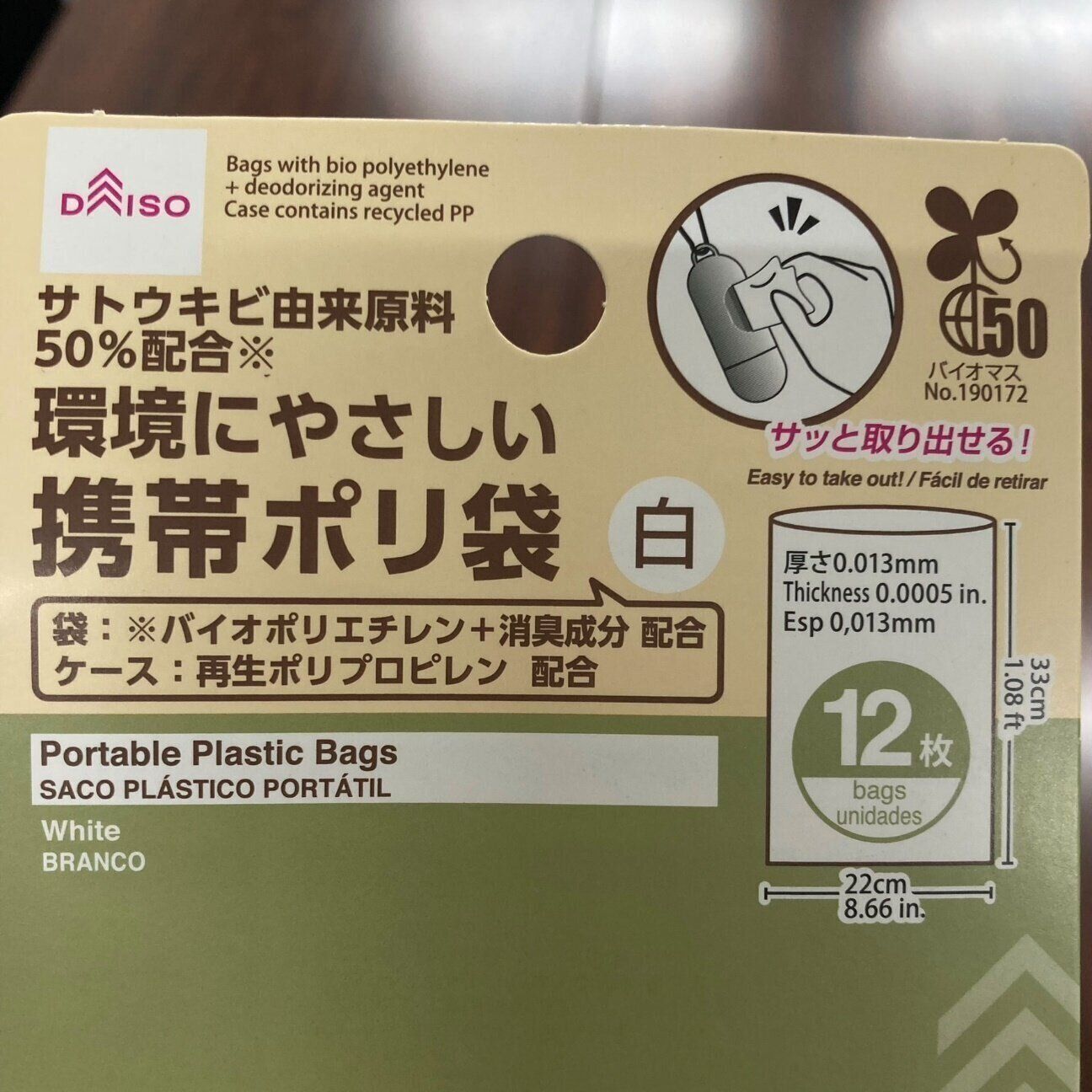 パッケージをよく見ると「サトウキビ由来原料50%配合」と書かかれています。これは石油ではなく、植物のサトウキビが由来の原料を使っているということ。
