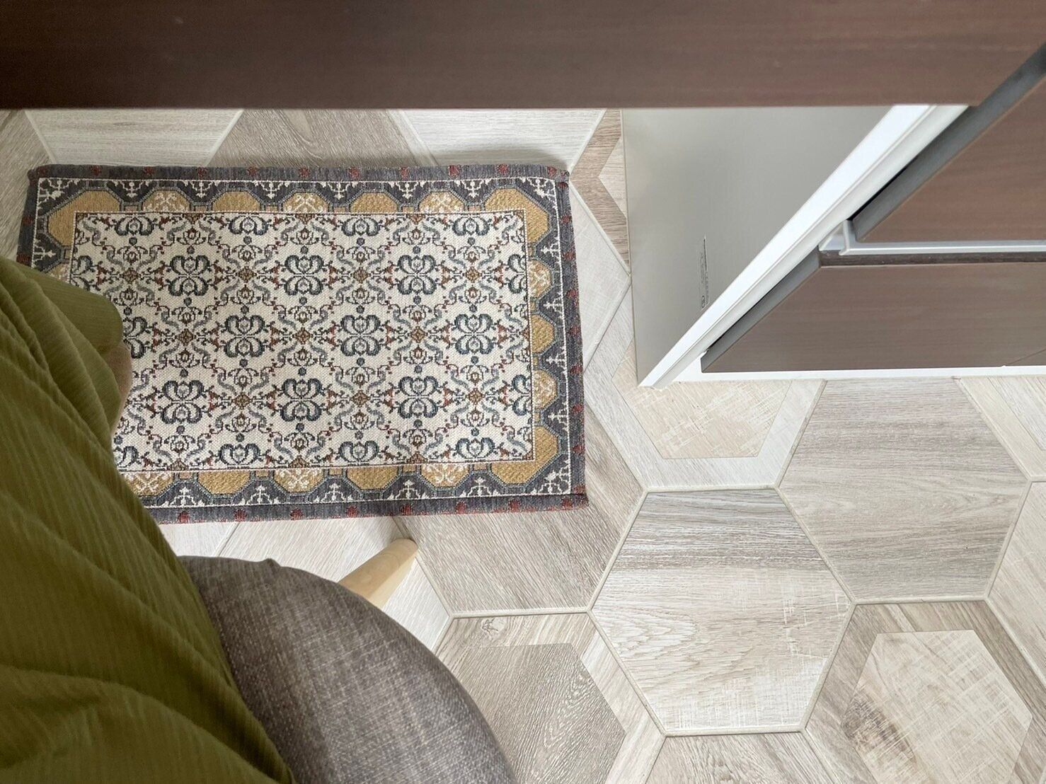 550円で購入できる、敷くだけで部屋がおしゃれになるアンティークマットのご紹介です。ベッドサイドの足元に、玄関ホールに、とラグマットの使用方法は想像できますが、今回はインテリアのアクセントにしたおすすめの使い方をお伝えします。