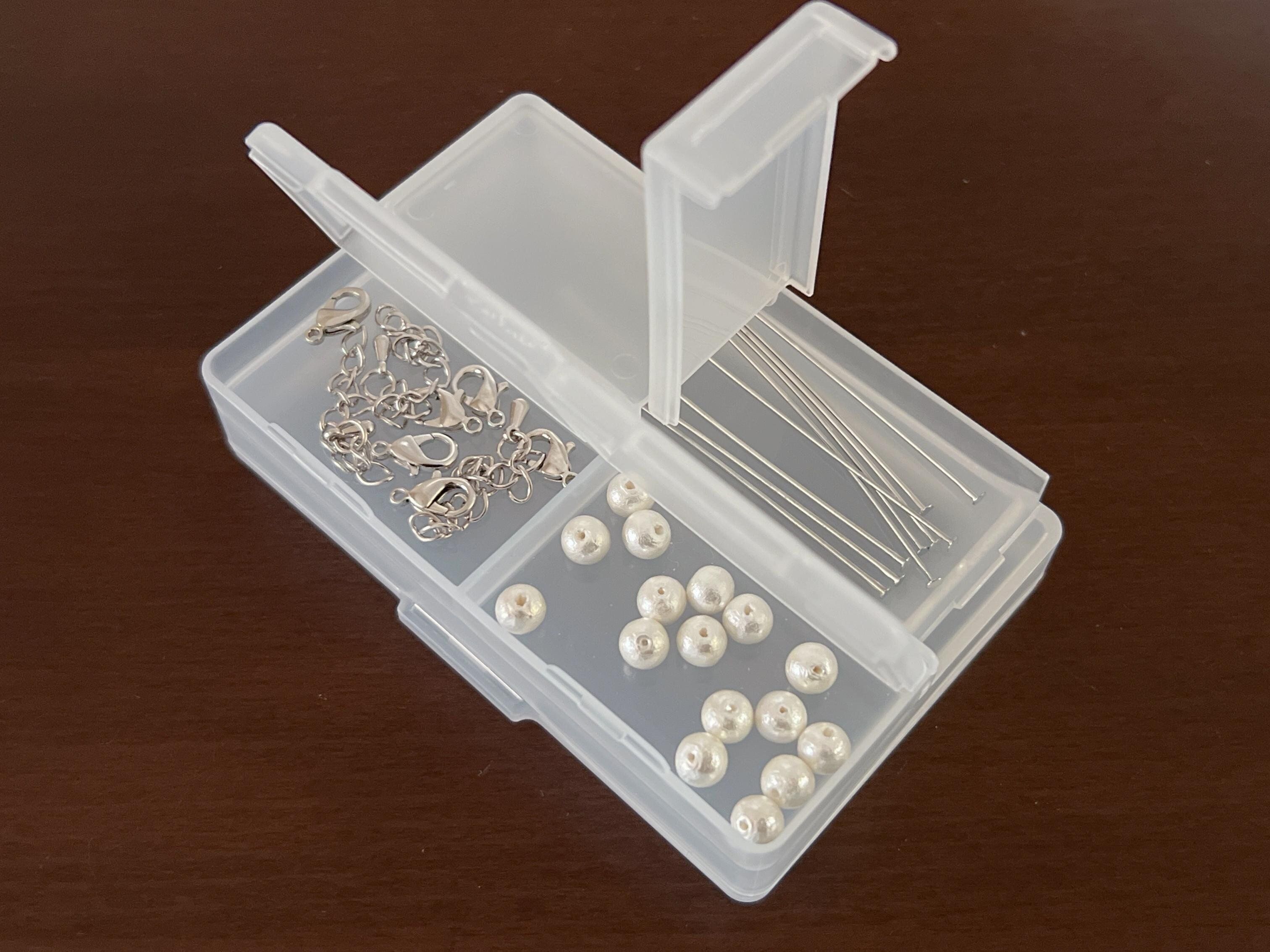 アクセサリーのパーツや、子どものおもちゃのビーズ入れとしても便利です。フタがついているので立てて収納できて安心です。