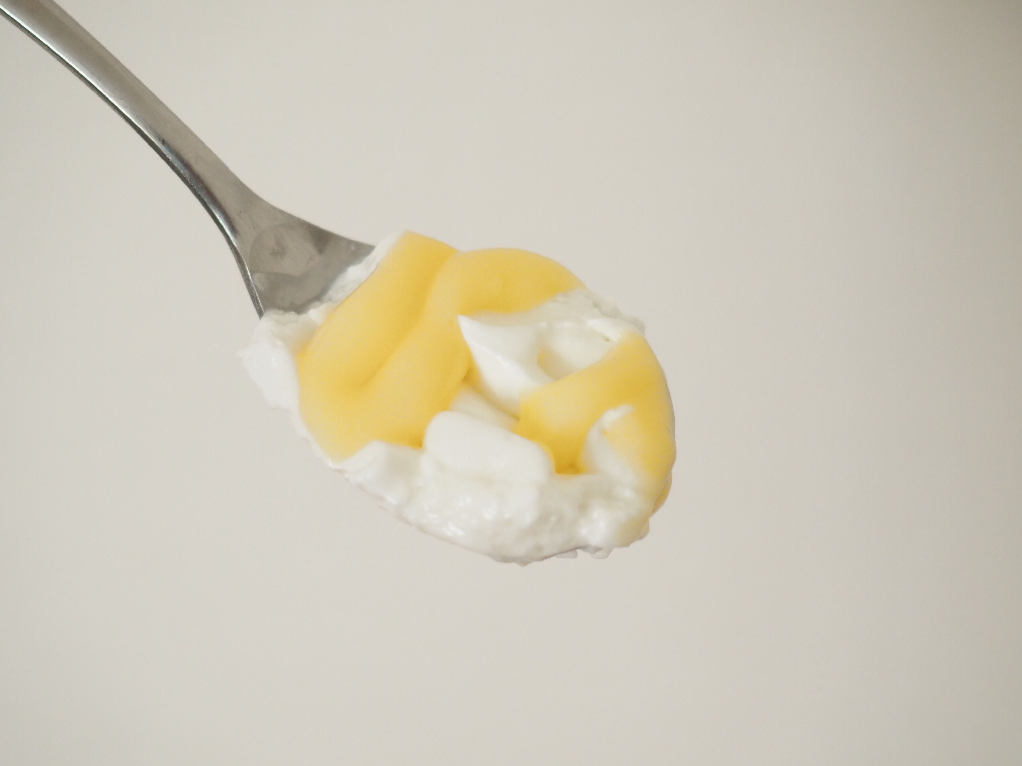 まずはミルク風味フィリングからひと口。エアリーな食感で、優しいミルク味を残しながら溶けるように消えていくのが好印象。濃厚な練乳と混ざり合い、甘党好みの甘さを味わえます。