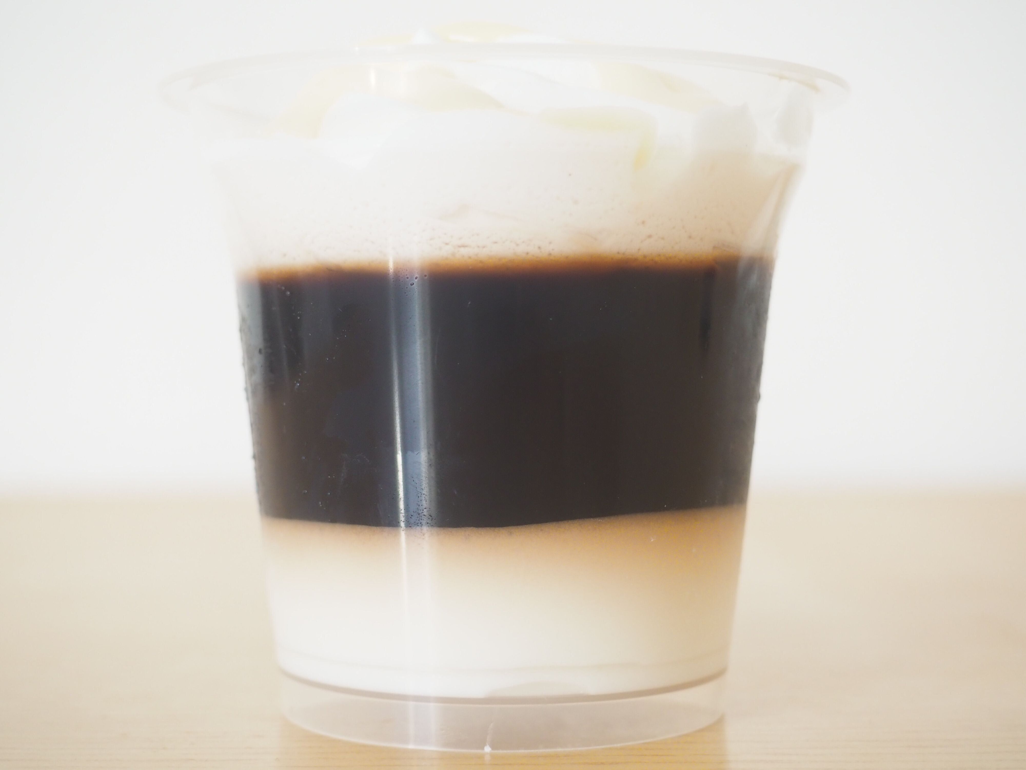 ふたを開けると現れるのは、コーヒーゼリーを覆うほどにトッピングされたミルク風味フィリングと練乳。なかなか迫力のあるボリュームですが、コーヒーと合わさると、どういった味わいになるのでしょう?